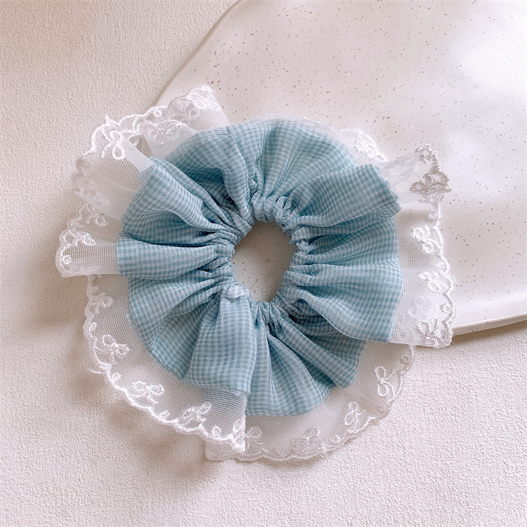 어린이 작은 신선한 격자 무늬 레이스 큰 장내 머리 반지 달콤한 소녀의 포니 꼬리 머리 밧줄 소녀의 공 머리 밧줄