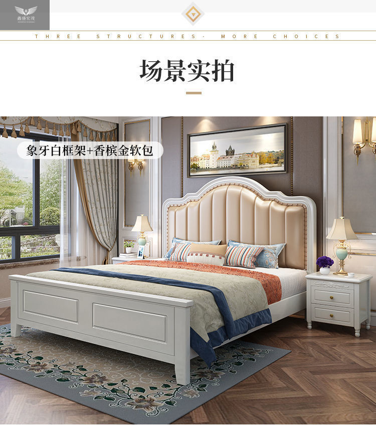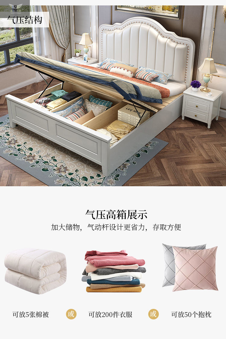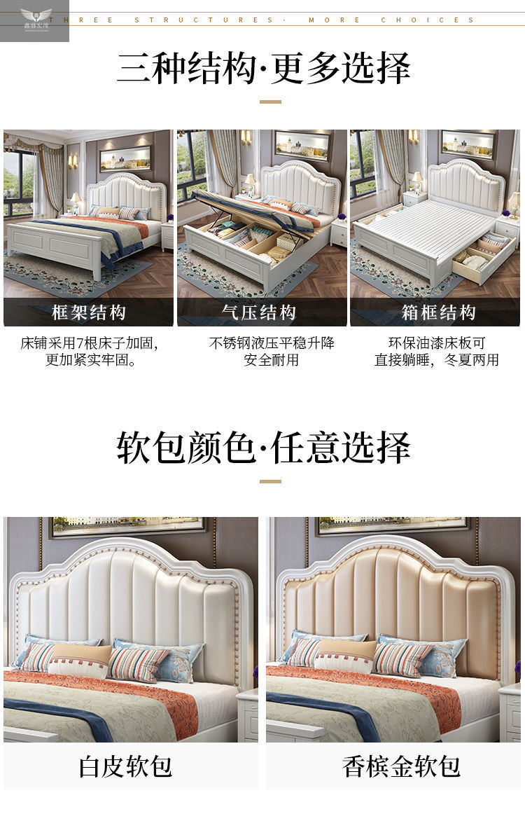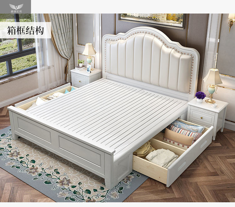 단단한 나무 미국식 침대 현대적인 미니멀리스트 라이트 럭셔리 1.8m 마스터 침실 더블 침대 1.5m 소프트 패키지 공주 침대 수납 웨딩 침대스토어 가기