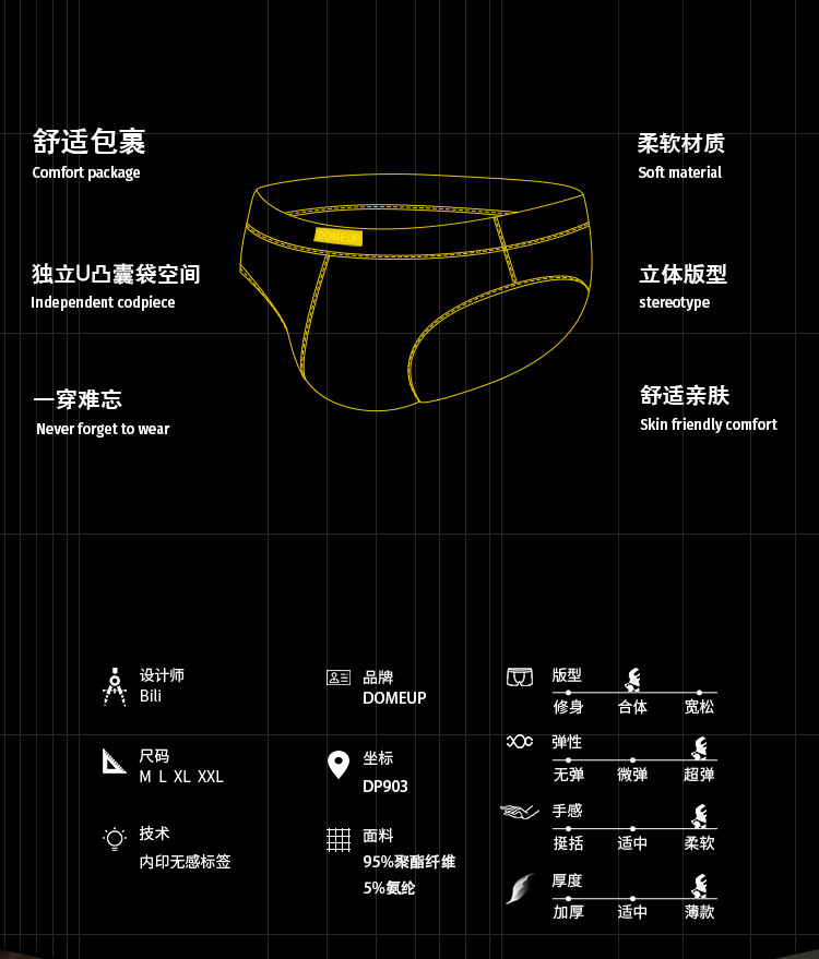 트렌디한 청소년 브랜드 DOMEUP 속옷 남성 섹시 로우 웨이스트 비키니 작은 팬티 타이트하고 몸에 꼭 맞는 엉덩이 리프팅