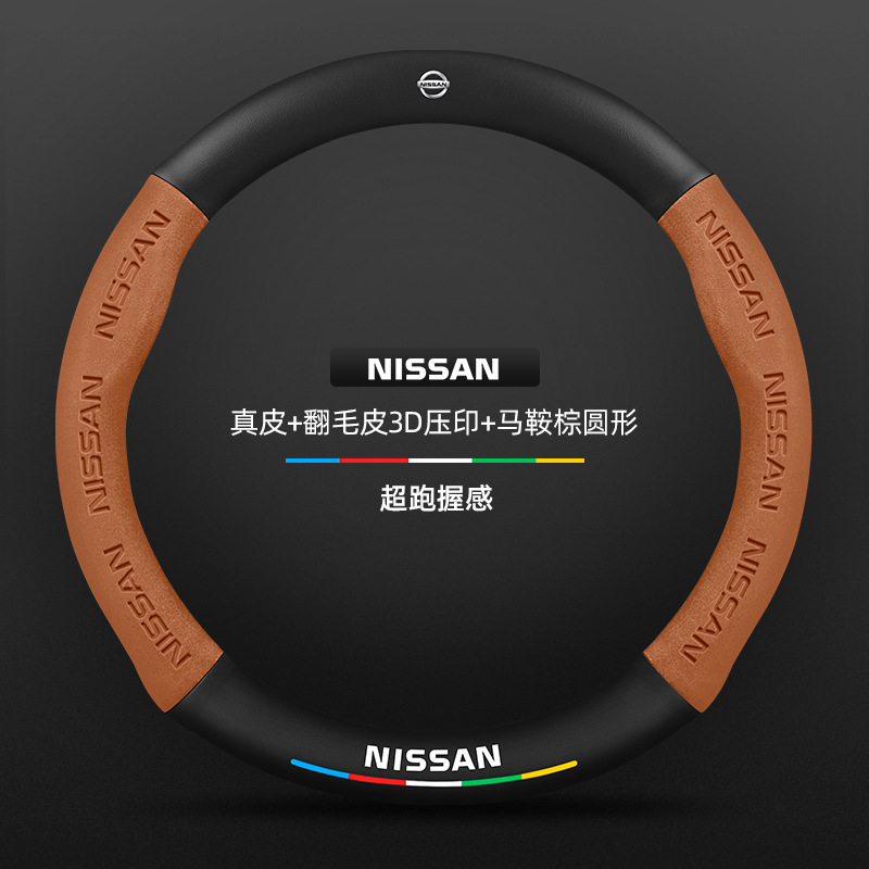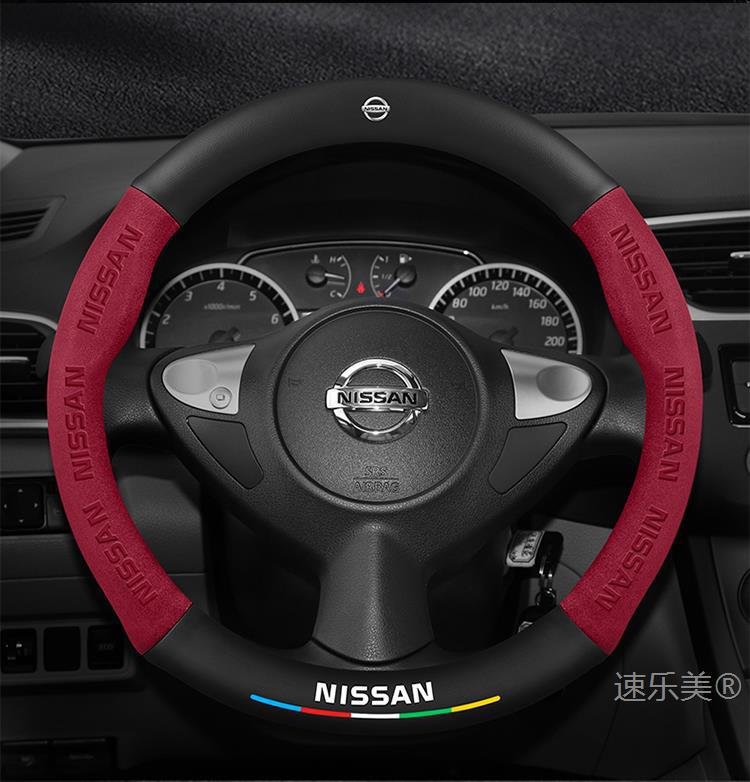 닛산 스티어링 휠 커버에 적합 Sylphy Qashqai Teana Sunshine X-Trail Teana Qashqai Loulan 가죽 스웨이드 핸들 커버
