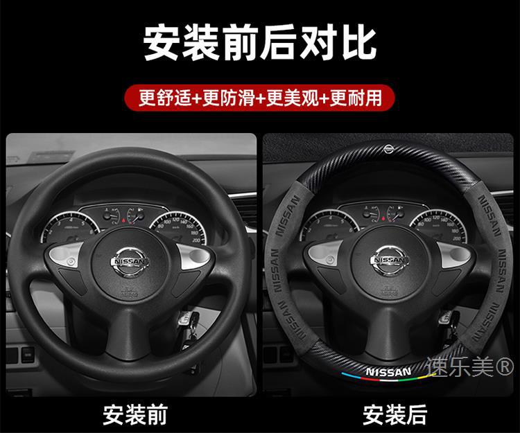닛산 스티어링 휠 커버에 적합 Sylphy Qashqai Teana Sunshine X-Trail Teana Qashqai Loulan 가죽 스웨이드 핸들 커버스토어 가기