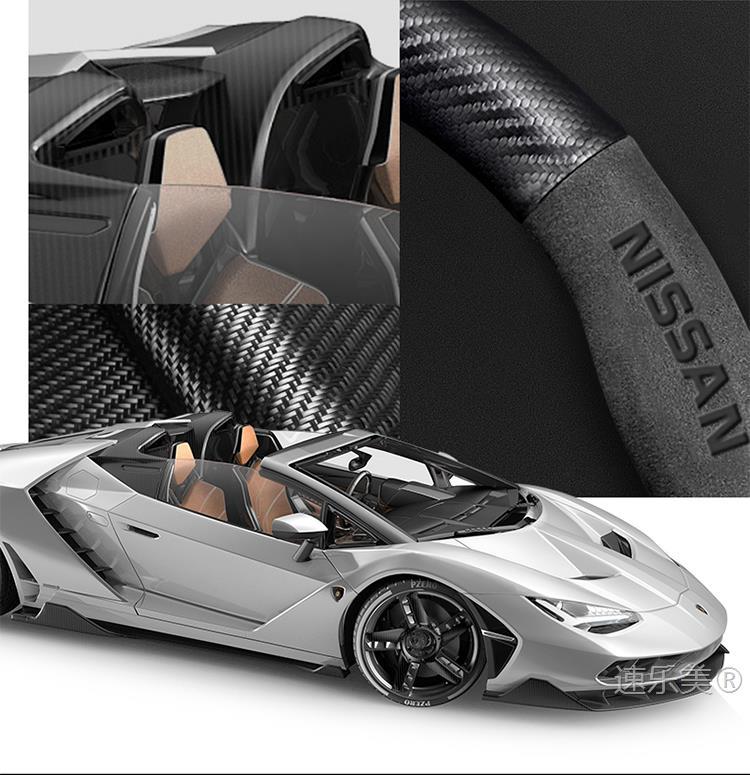 • 스웨이드 3D 양각 탄소 섬유 가죽 블랙 D자형 닛산 로고