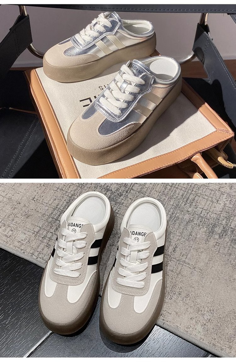 바오터우 화이트 슈즈 2024 신상 레트로 컬러 블록 캐주얼 스니커즈 원스텝 육군 훈련 스니커즈 두꺼운 밑창 반슬리퍼스토어 가기