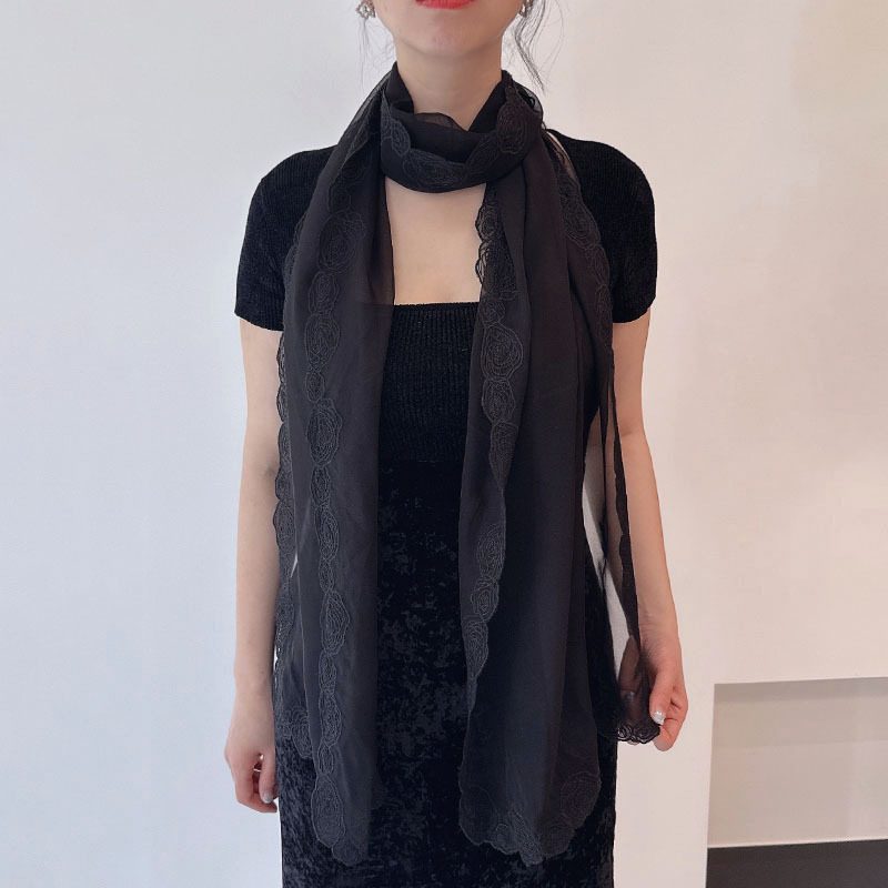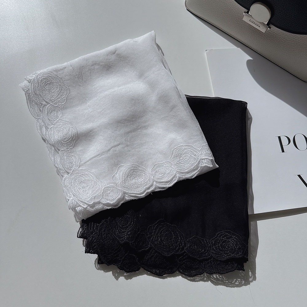 여성을위한 기계 자수 장미 테두리 실크 스카프 고품질 OL 통근 스타일 유닛 사무실 회의 장식 스카프 소프트스토어 가기
