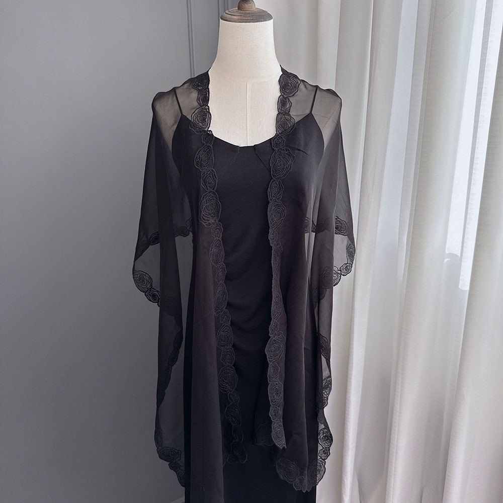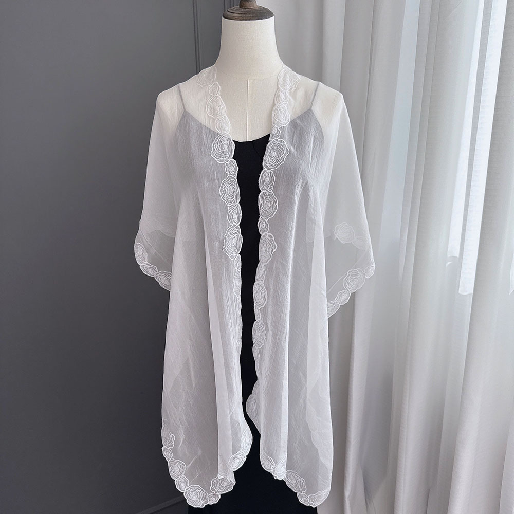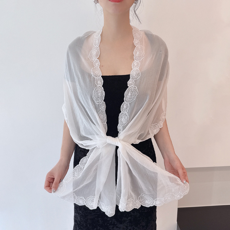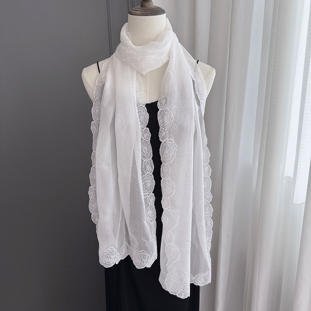 여성을위한 기계 자수 장미 테두리 실크 스카프 고품질 OL 통근 스타일 유닛 사무실 회의 장식 스카프 소프트
