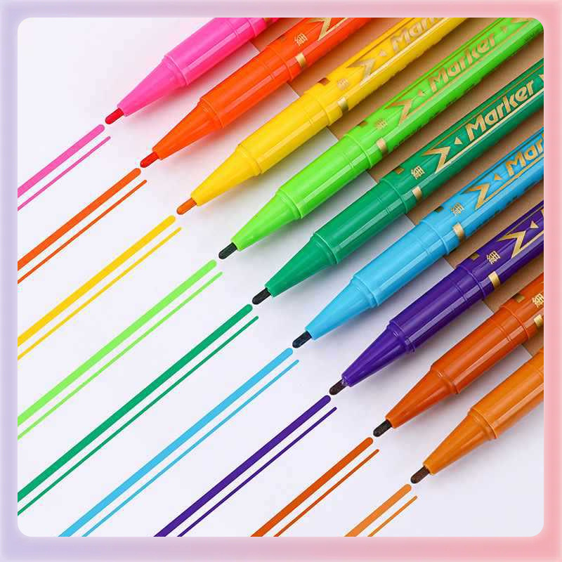 ✅ 양면 핸드페인팅 후크펜, 유성선펜, 수성컬러바늘펜, 수채펜, 12색 양면마커스토어 가기