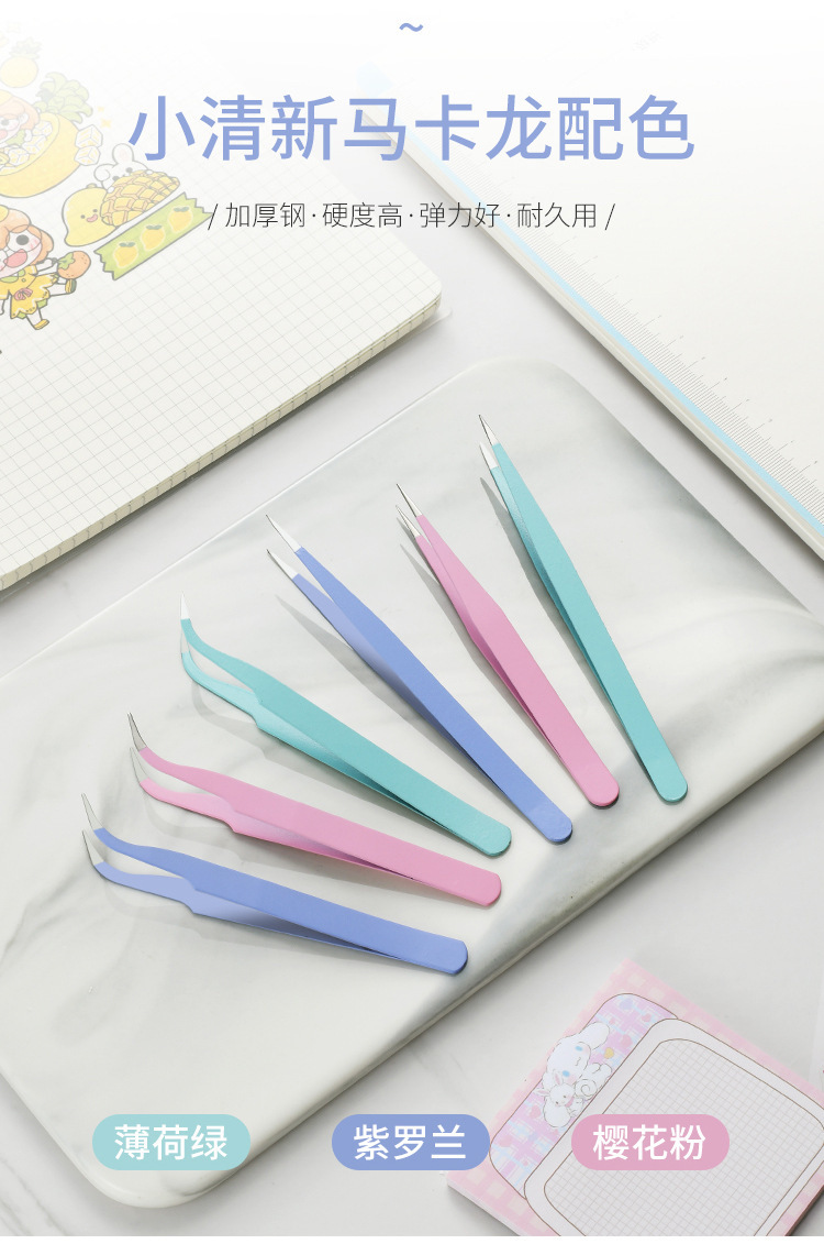 ✅ 핸드북 DIY 핀셋 마카롱 컬러 스테인레스 스틸 네일 아트 클립 다이아몬드 수제 스티커 테이프 클립 학생 Niezi스토어 가기