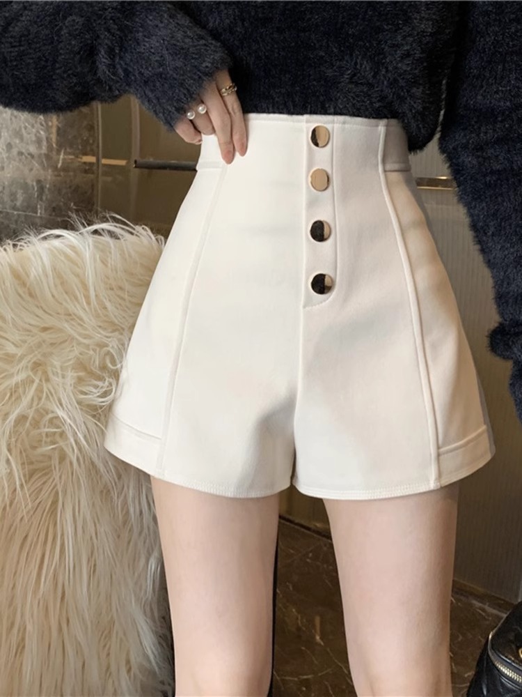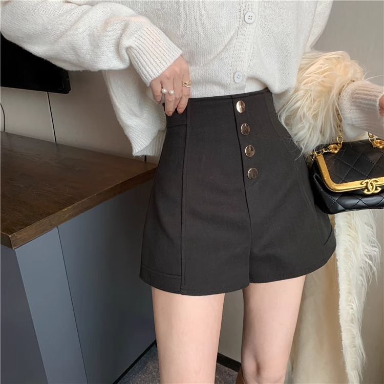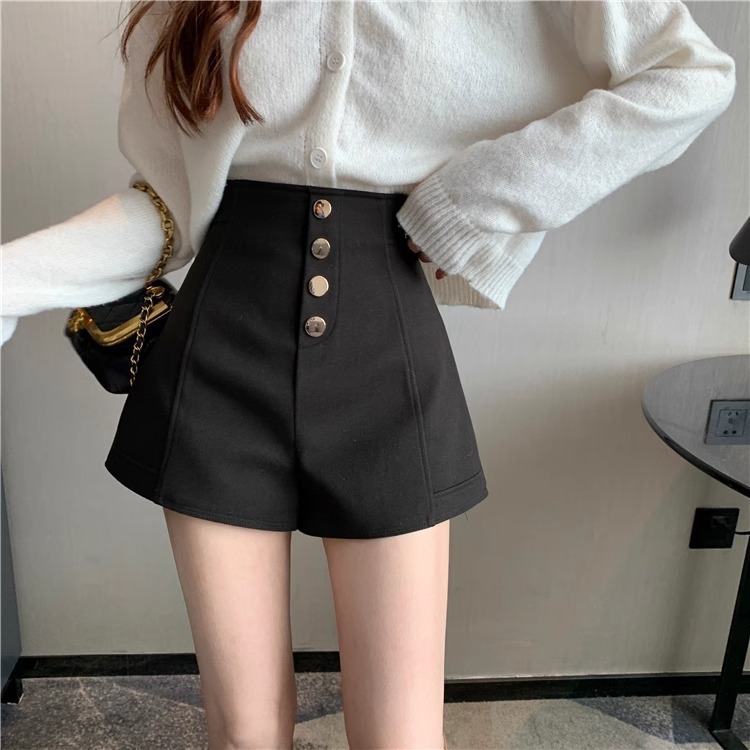 가을 신상 키 작은 분들을 위한 하이웨이스트 슬림핏 와이드 블랙 캐주얼 팬츠, 트렌디한 빅사이즈 인기 여성 반바지스토어 가기