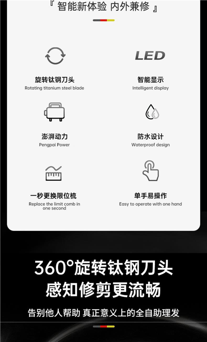 • (단발 전용 면도) 업그레이드된 합금 헤드/전신 세척 가능 모델 + 이중 강철 가위 + 무료 8피스 이발 세트, 1년 교체