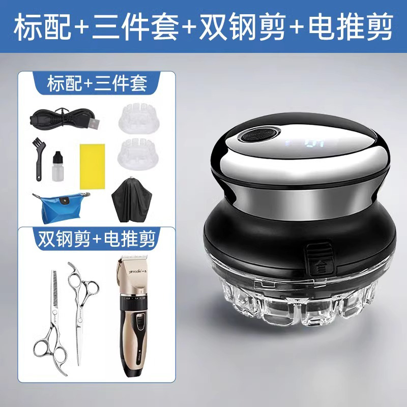• (대머리 전문 면도) 차세대 대머리 기계/전신 세척 + 이중 강철 가위 + 무료 6피스 이발 세트, 1년 교체