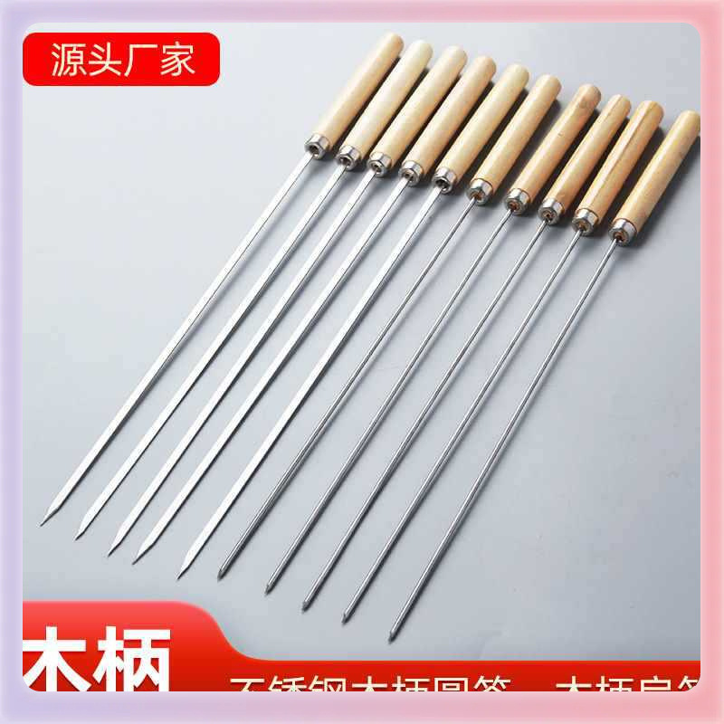 ✅ 도매 스테인레스 스틸 바베큐 스틱 304 나무 손잡이 바베큐 바늘 두꺼운 바베큐 스틱 플랫 스틱 양고기 꼬치 바베큐