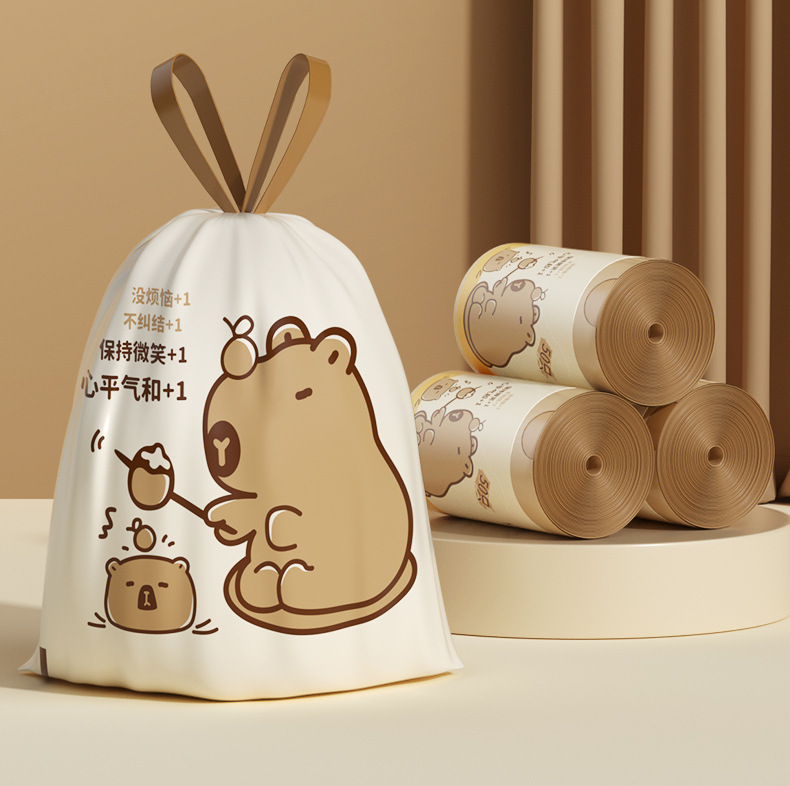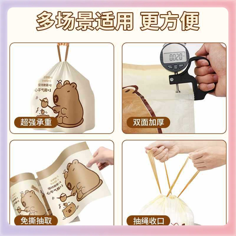 ✅ Kapibala 찢어지지 않는 졸라매는 끈 쓰레기 봉투 두꺼운 만화 고가치 가정용 주방 거실 초두꺼운 플라스틱