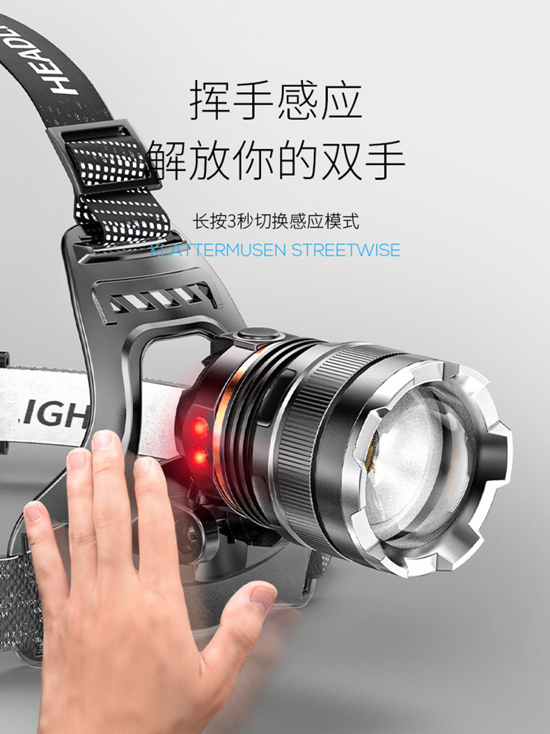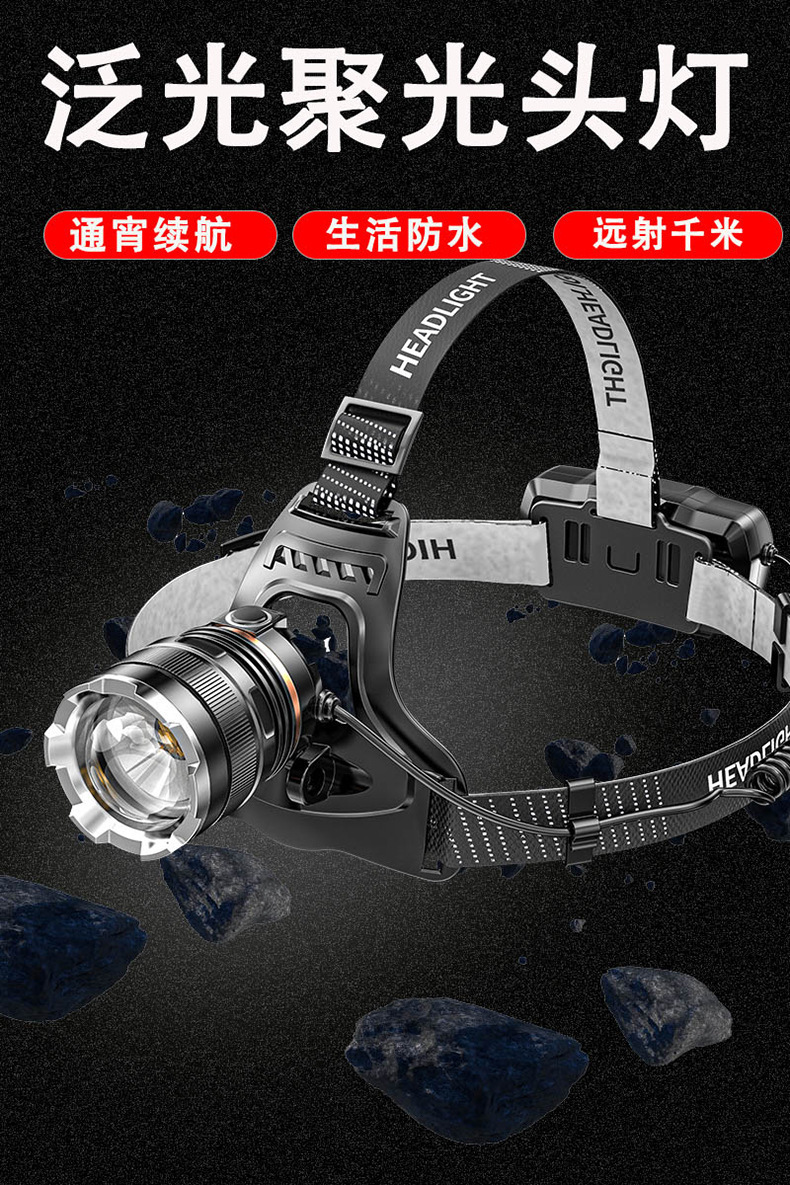 야외 새로운 조명 밝은 헤드 장착 헤드 라이트 충전식 장거리 휴대용 작업 헤드 라이트