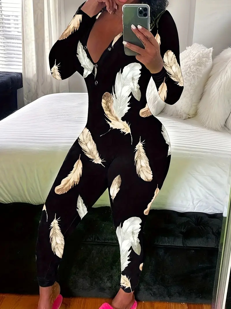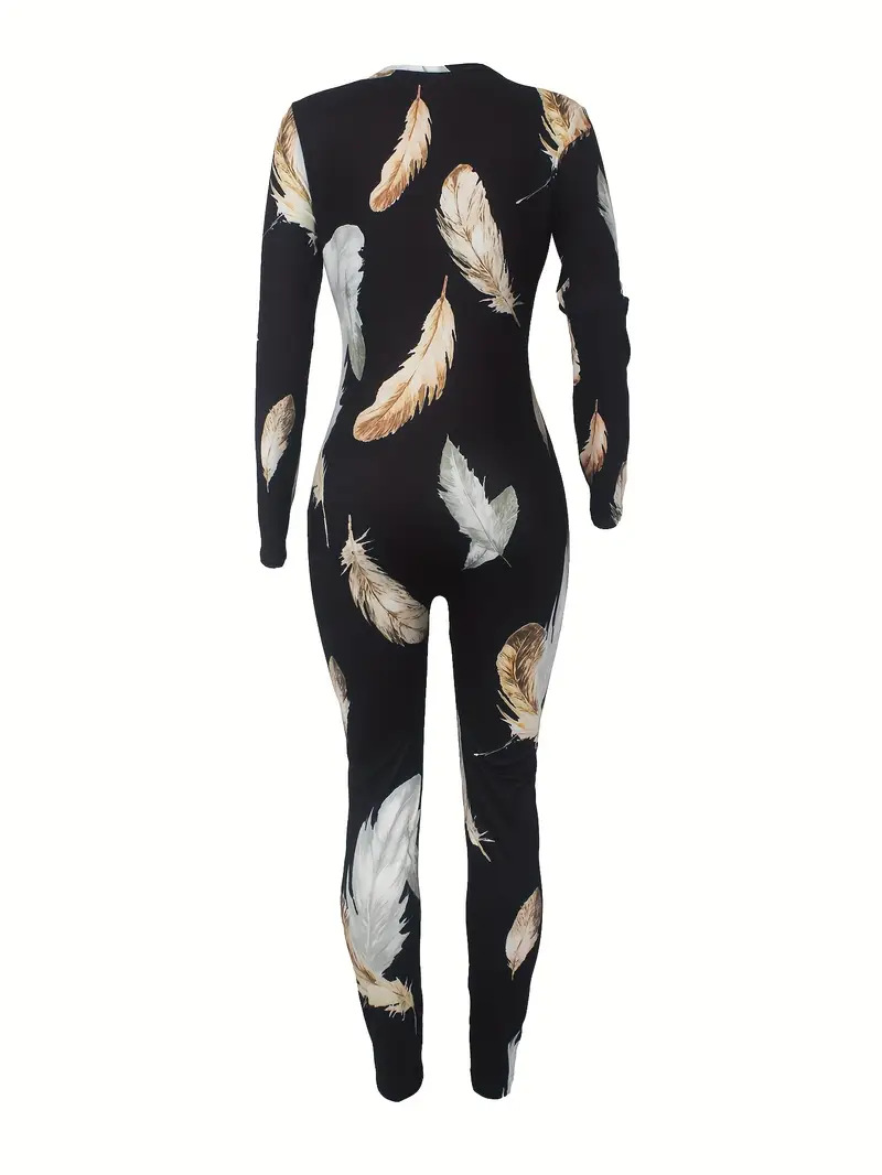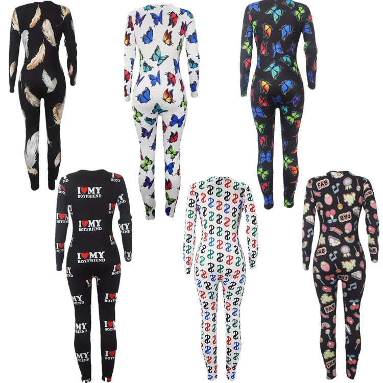유럽과 미국의 할로윈 인쇄 새로운 높은 칼라 풀오버 긴 소매 섹시한 점프 수트 아마존 대외 무역 세대스토어 가기