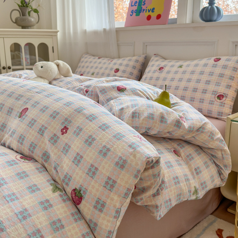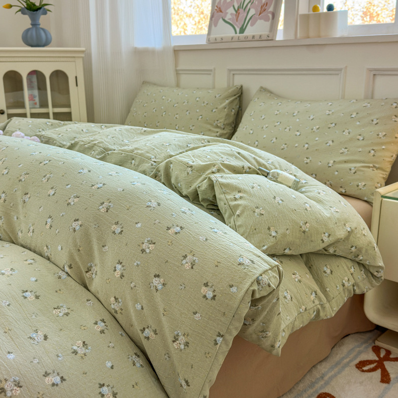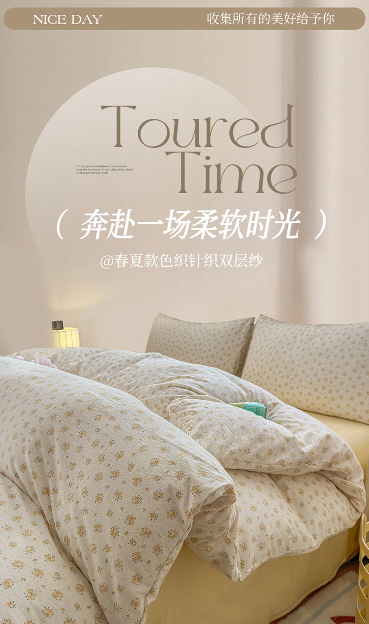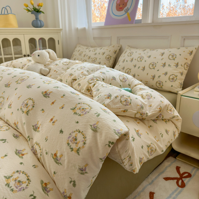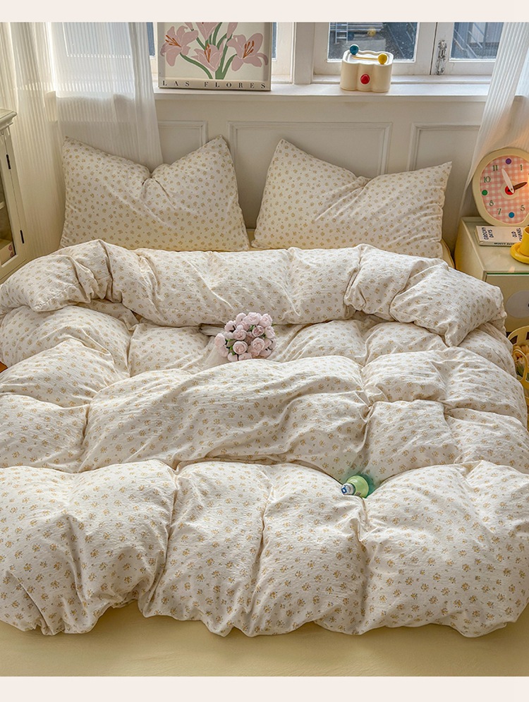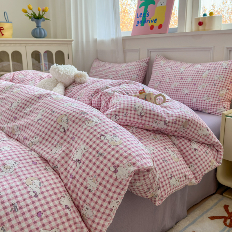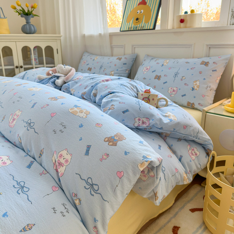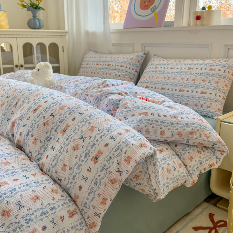 제조업체 도매 클라우드 감촉 이중 거즈 4종 세트, 매우 부드러운 침대 시트 이불 커버 3종 세트, 학생용 침대 시트스토어 가기