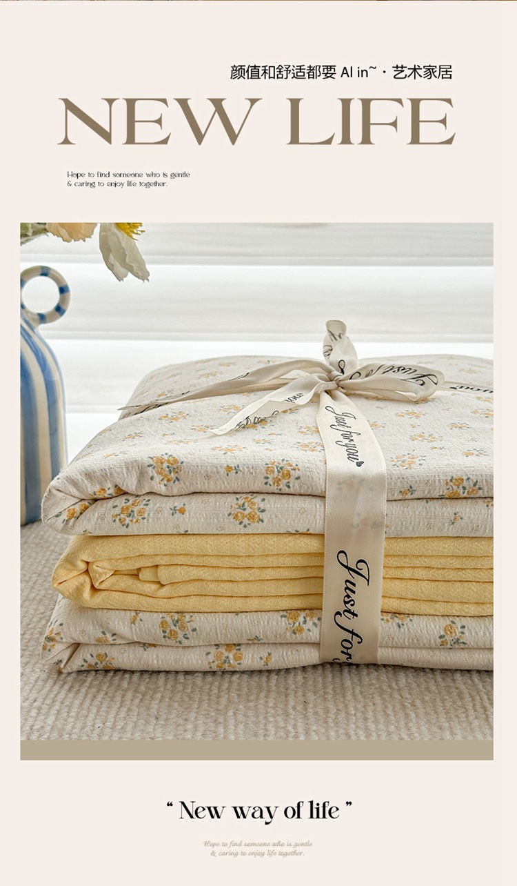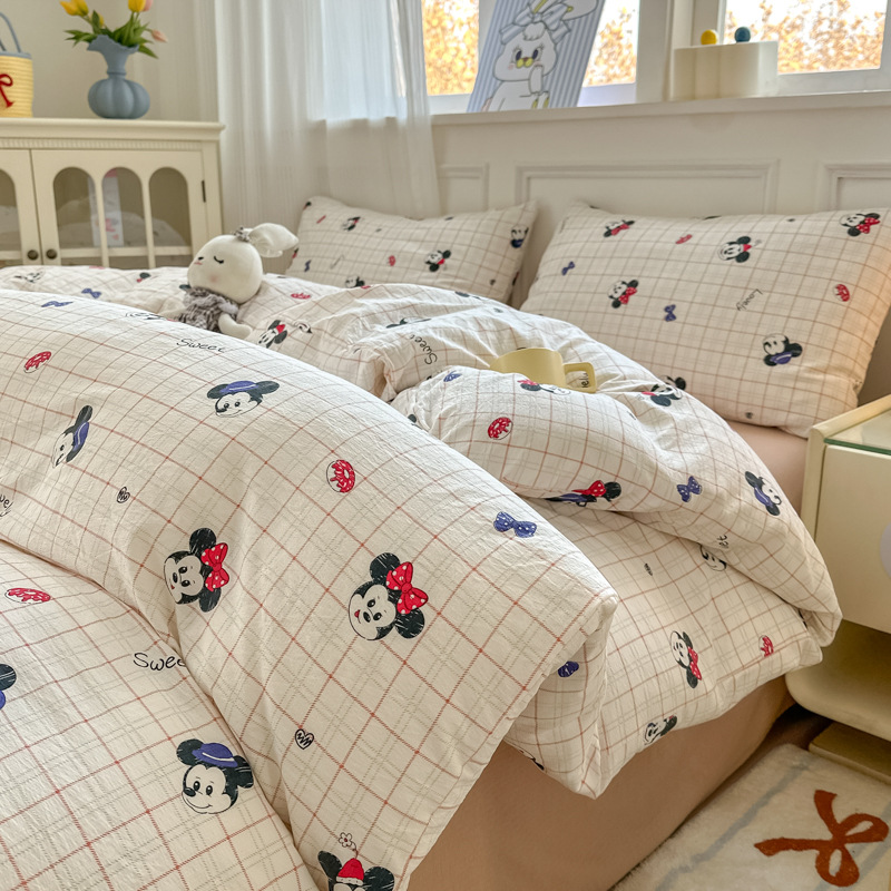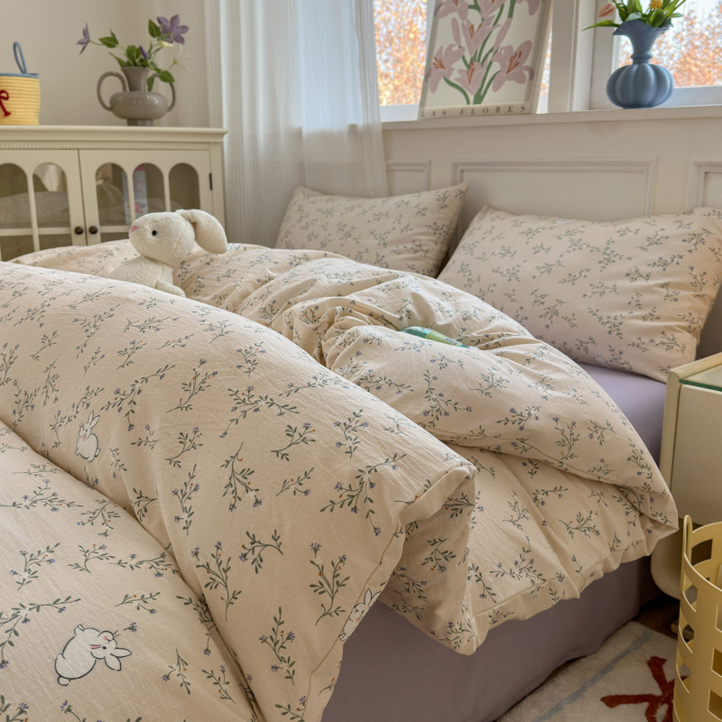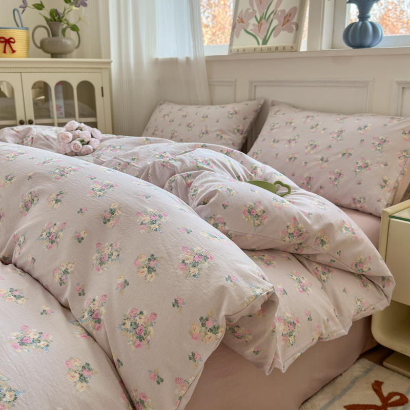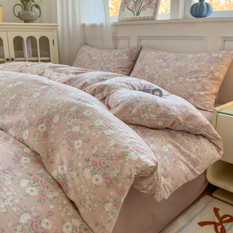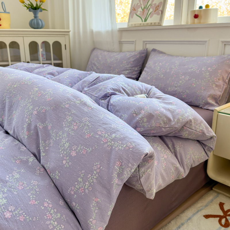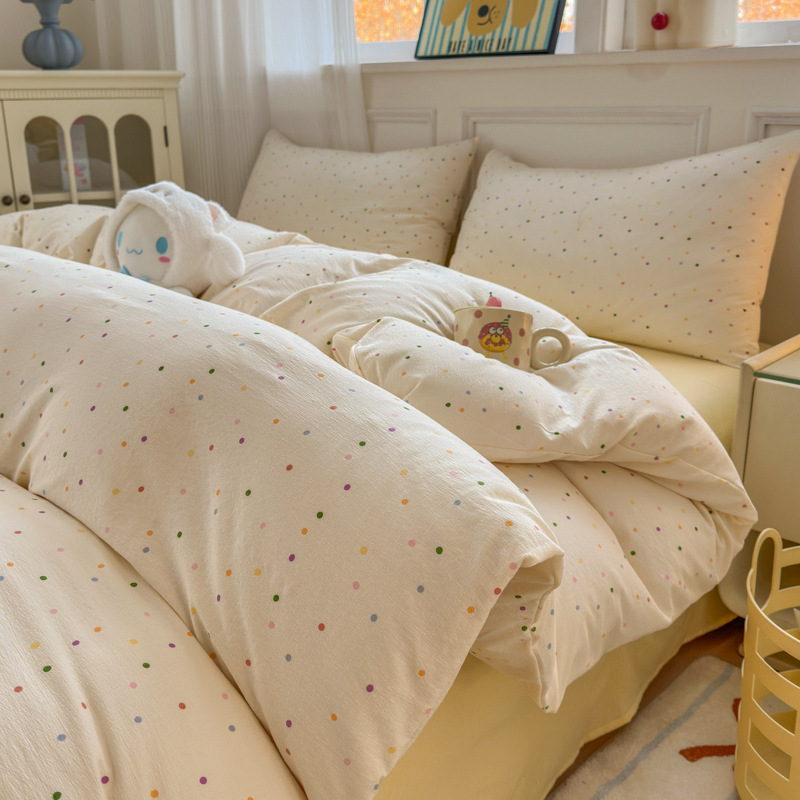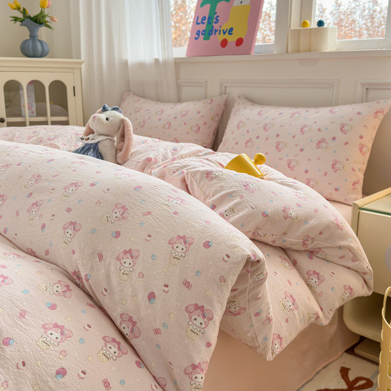제조업체 도매 클라우드 감촉 이중 거즈 4종 세트, 매우 부드러운 침대 시트 이불 커버 3종 세트, 학생용 침대 시트스토어 가기