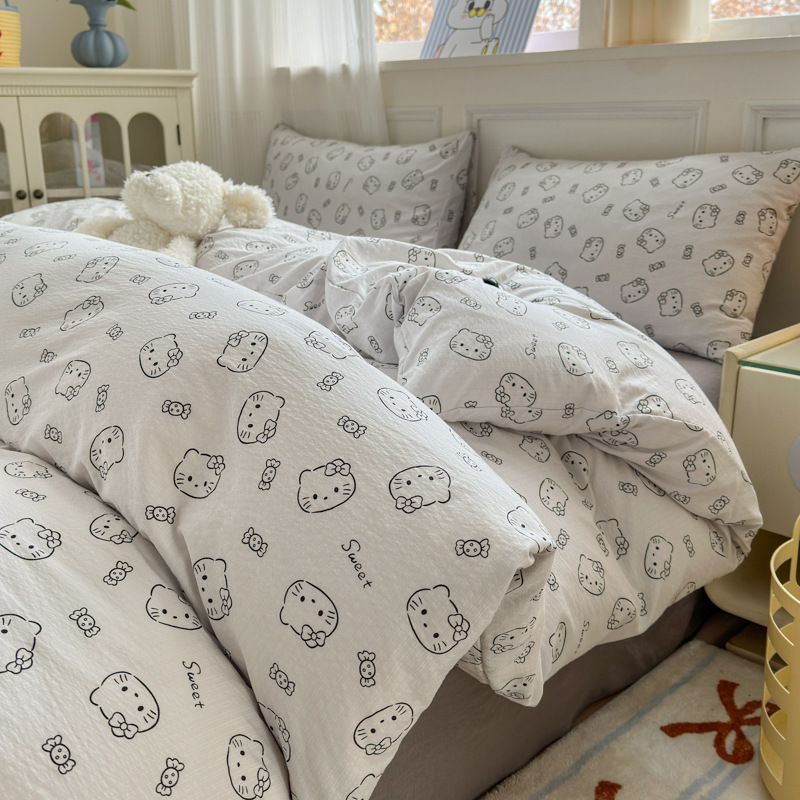 제조업체 도매 클라우드 감촉 이중 거즈 4종 세트, 매우 부드러운 침대 시트 이불 커버 3종 세트, 학생용 침대 시트