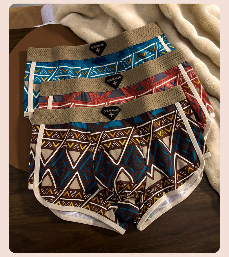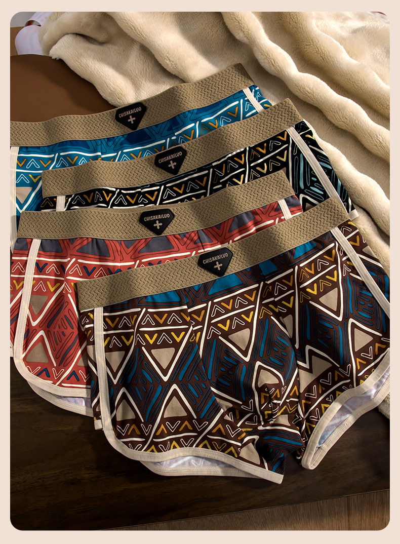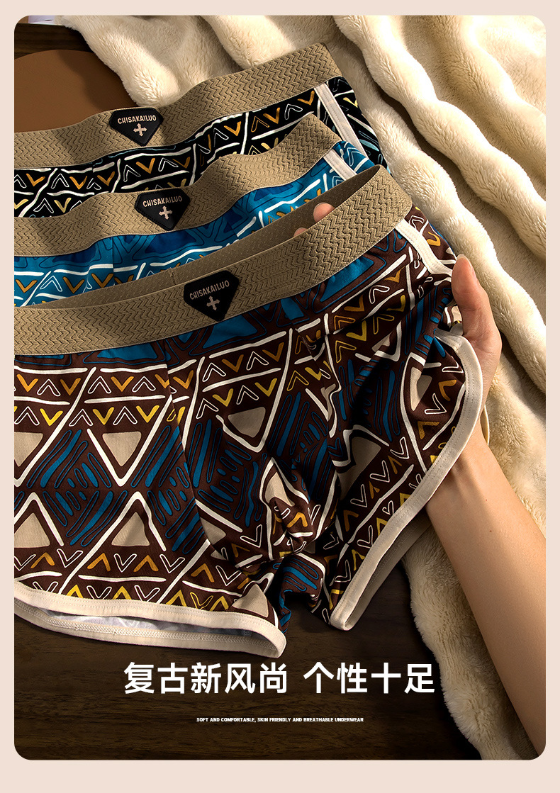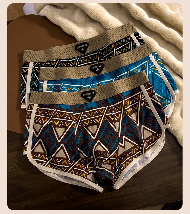 아메리칸 레트로 남성 순면 속옷, 통기성 사각팬티, 에스닉 스타일 트렌디한 화살표 팬츠, 미드웨이스트 루즈 사각팬티스토어 가기