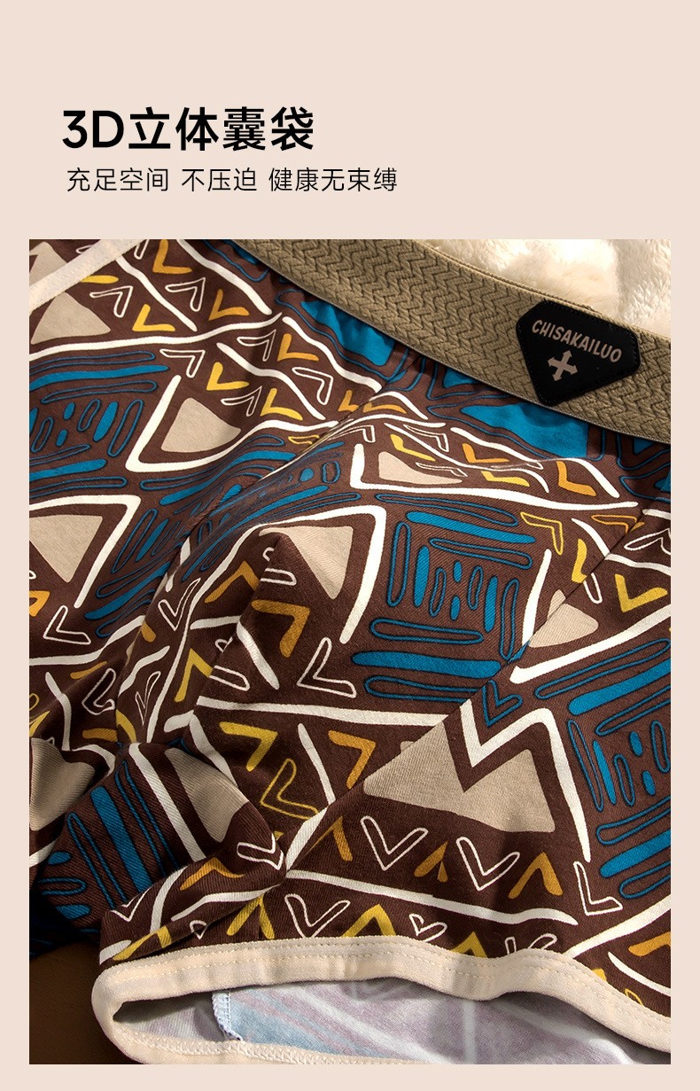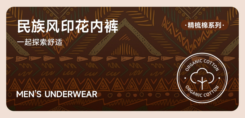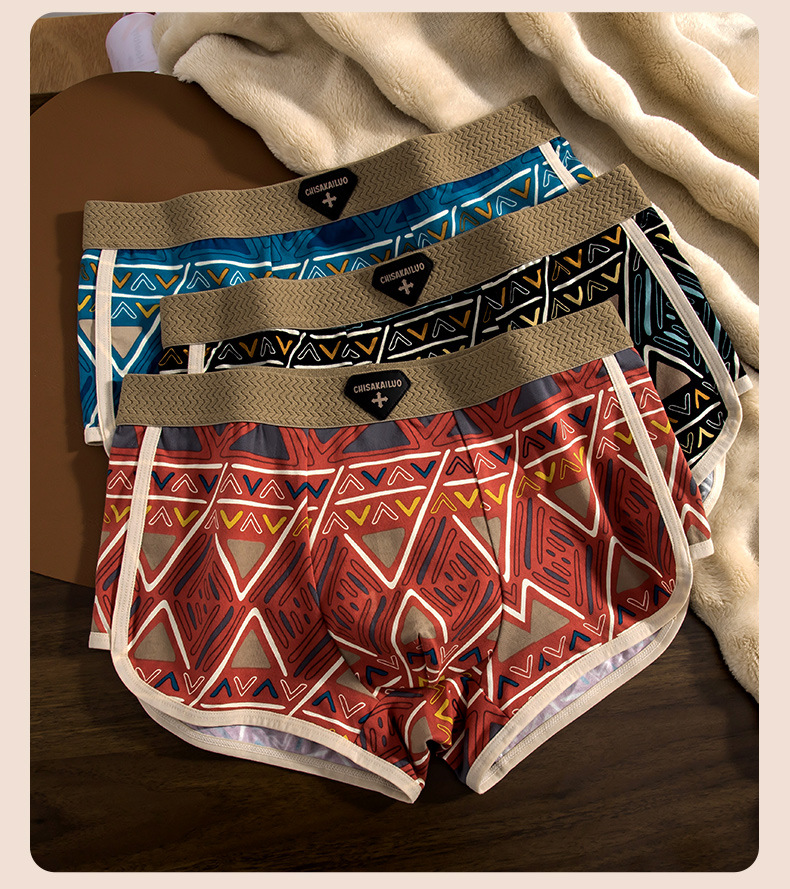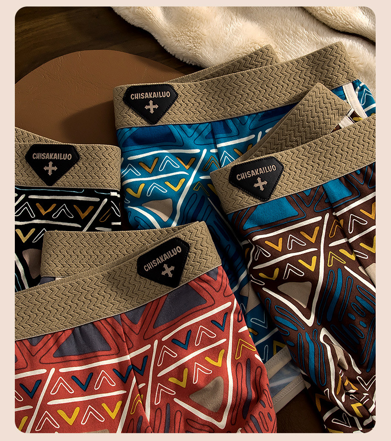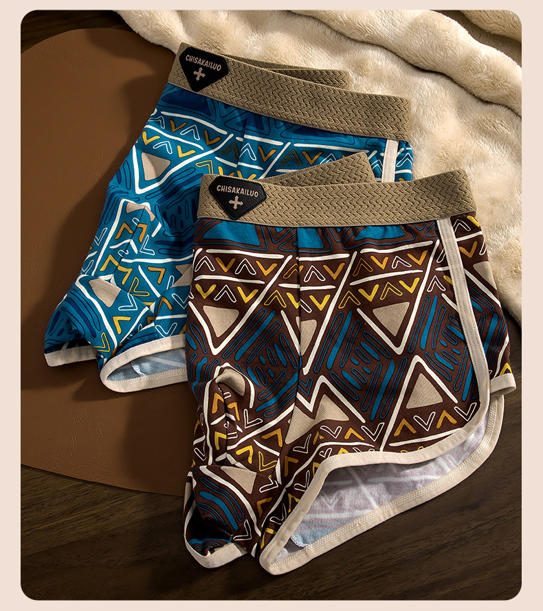 아메리칸 레트로 남성 순면 속옷, 통기성 사각팬티, 에스닉 스타일 트렌디한 화살표 팬츠, 미드웨이스트 루즈 사각팬티스토어 가기