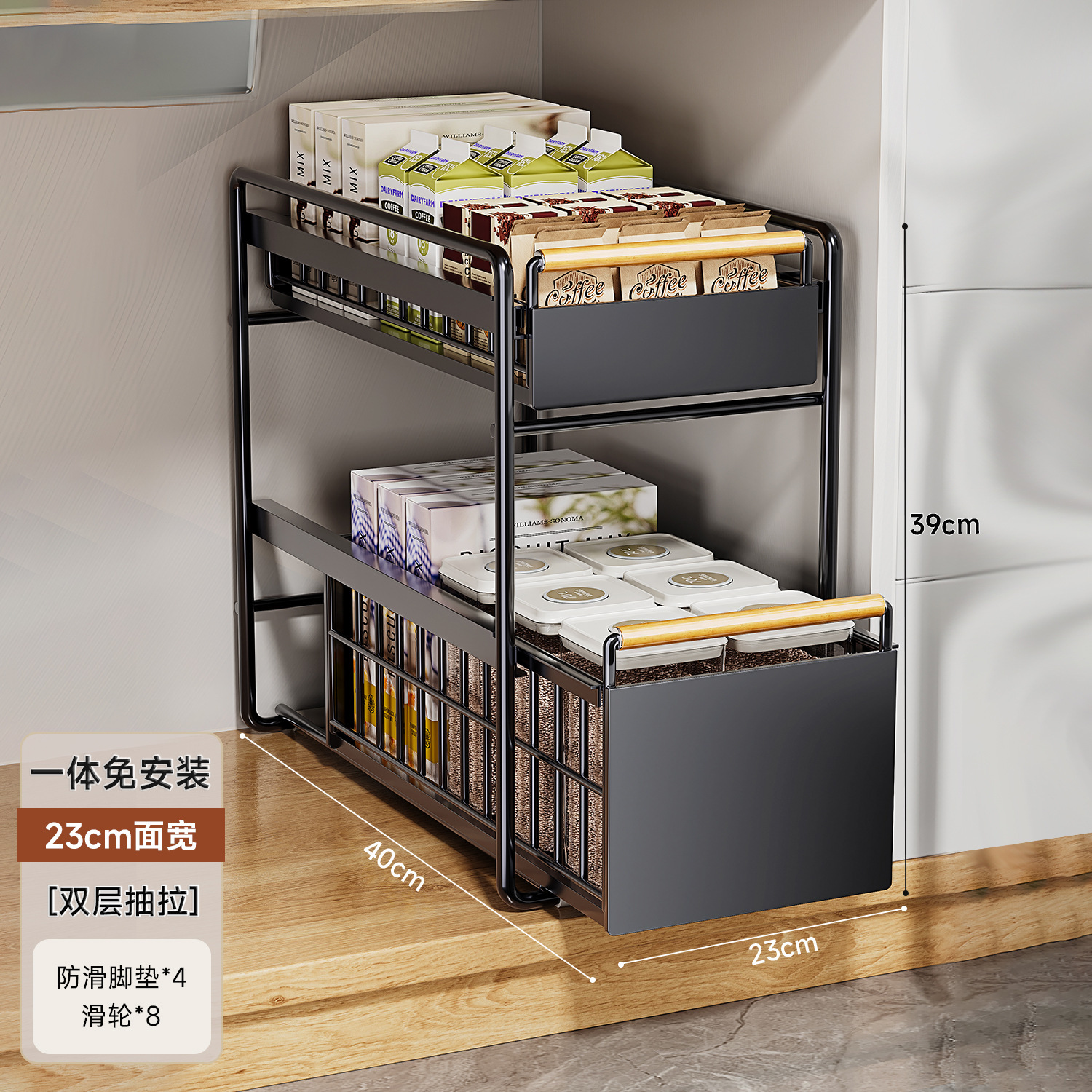 주방 싱크 스토리지 랙 조미료 그릇 및 접시 풀아웃 풀 다기능 스토리지 랙 캐비닛 바구니 라미네이트 랙