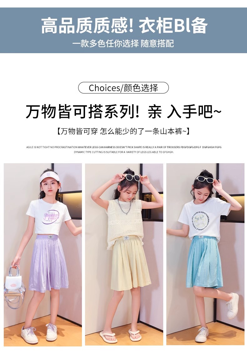 소녀 여름 5 점 바지 2025 새로운 여름 느슨한 야마모토 바지 어린이 스포츠 빠른 건조 바지 얇은 아이스 실크 바지스토어 가기