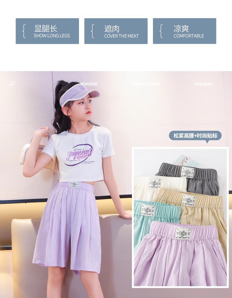 소녀 여름 5 점 바지 2025 새로운 여름 느슨한 야마모토 바지 어린이 스포츠 빠른 건조 바지 얇은 아이스 실크 바지