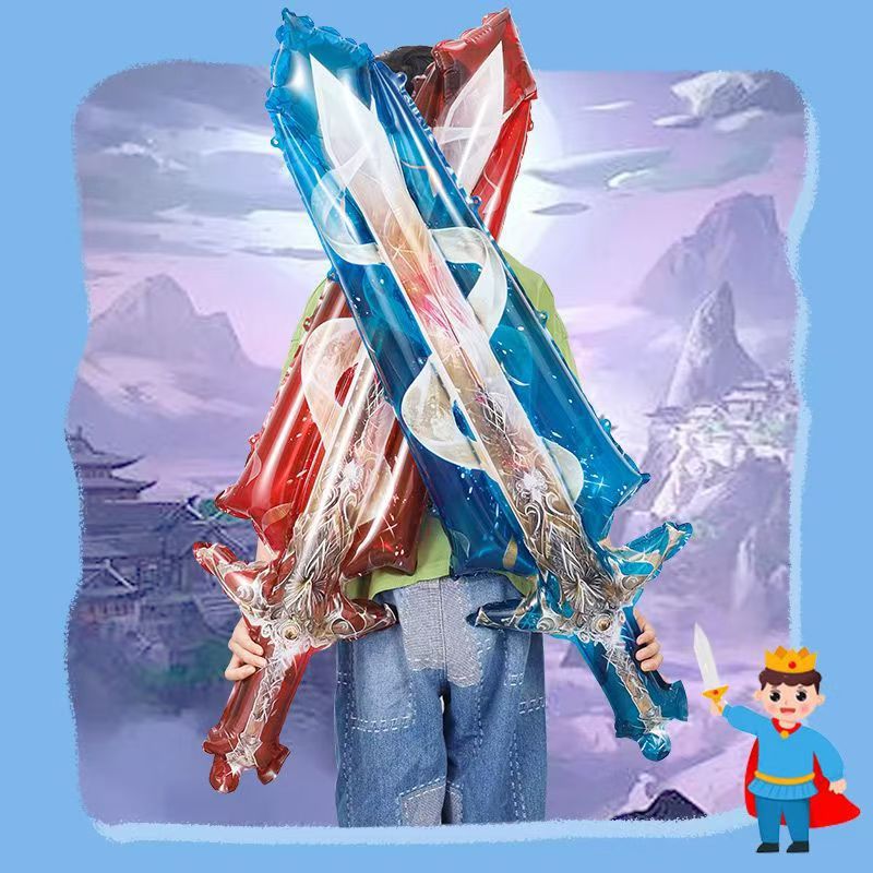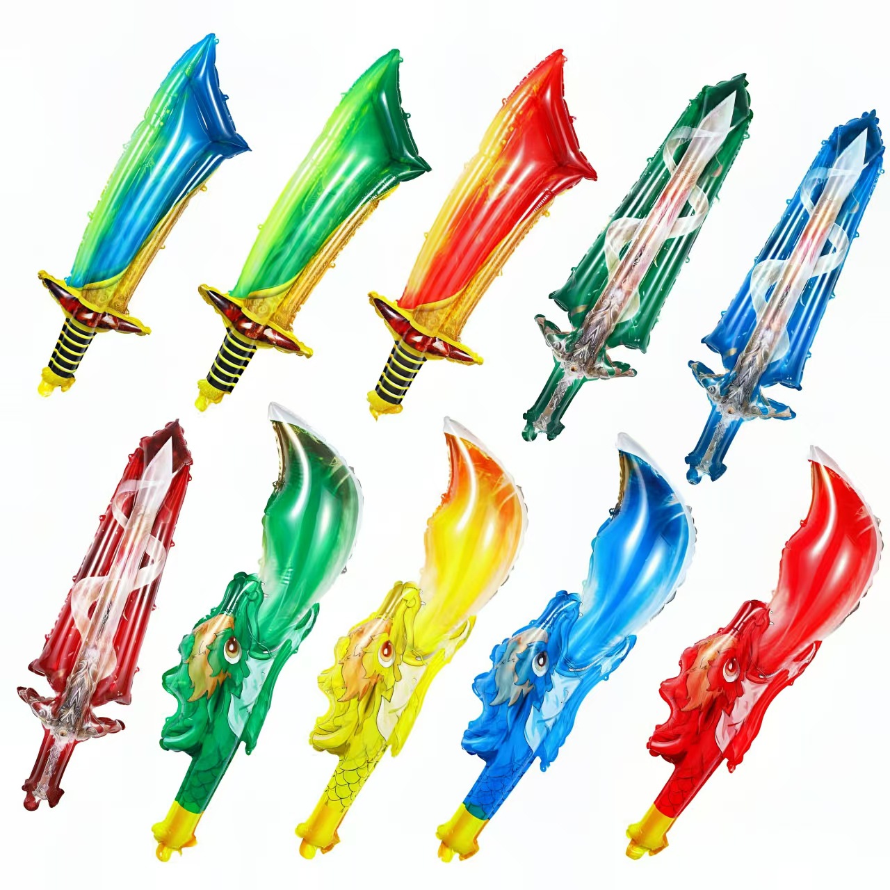 만화 스타일의 어린이용 풍선 무기 장난감, 휴대용 막대, 타격봉, 검, 갑옷 풍선