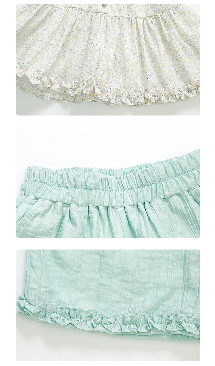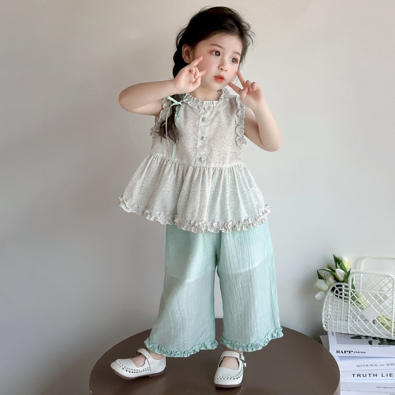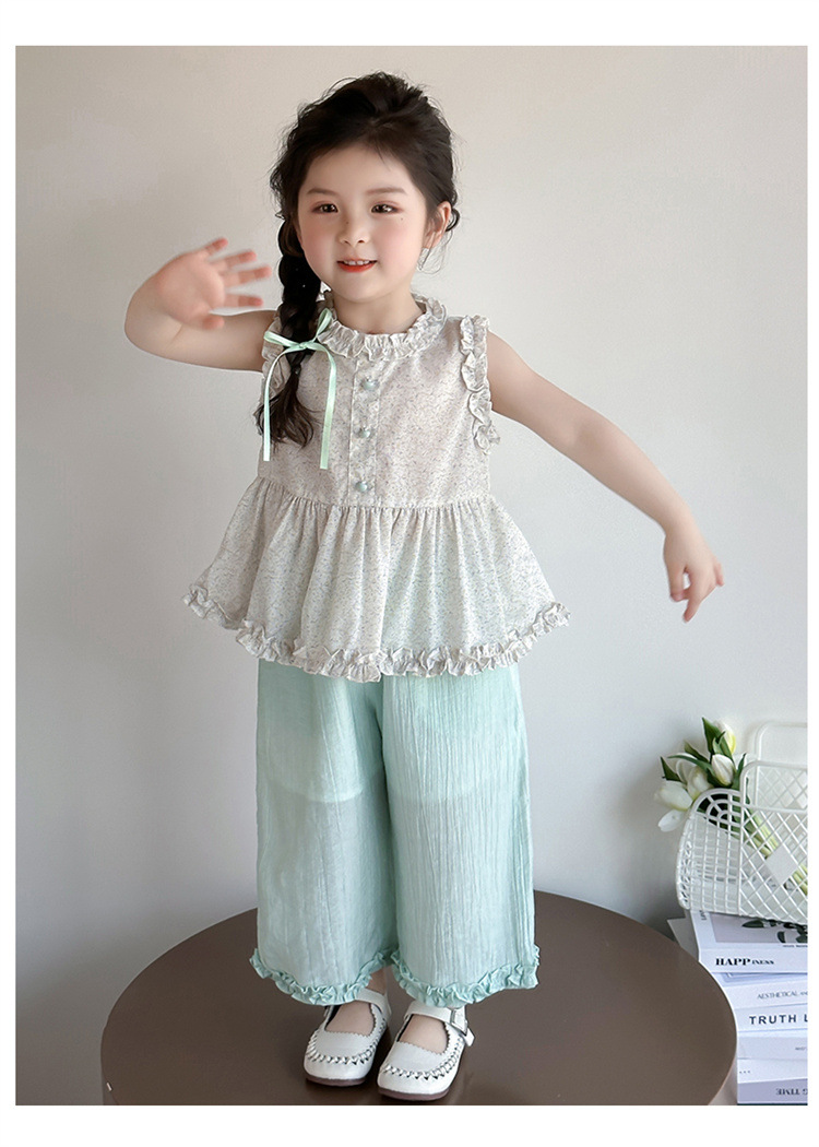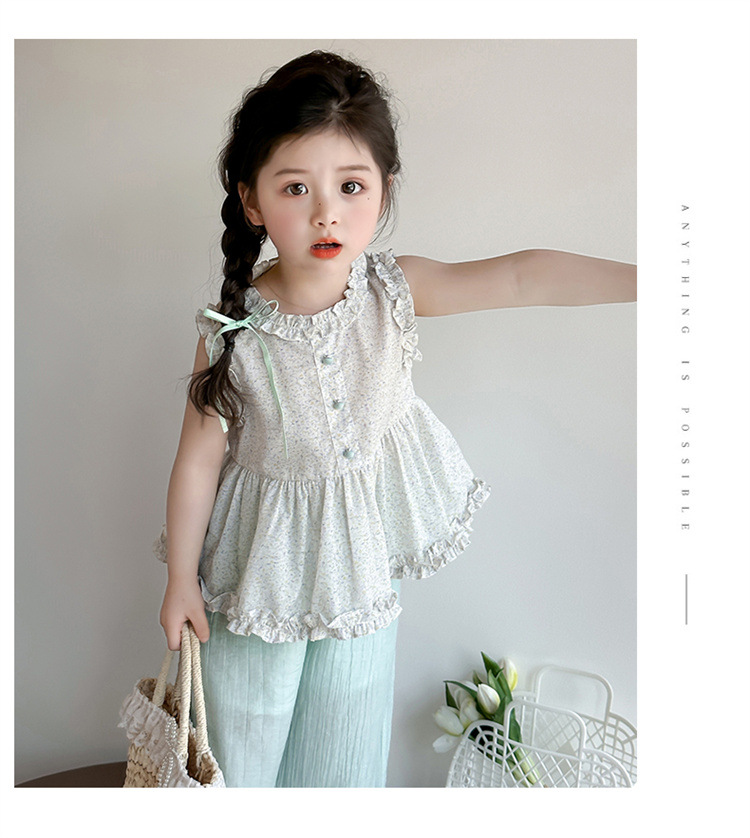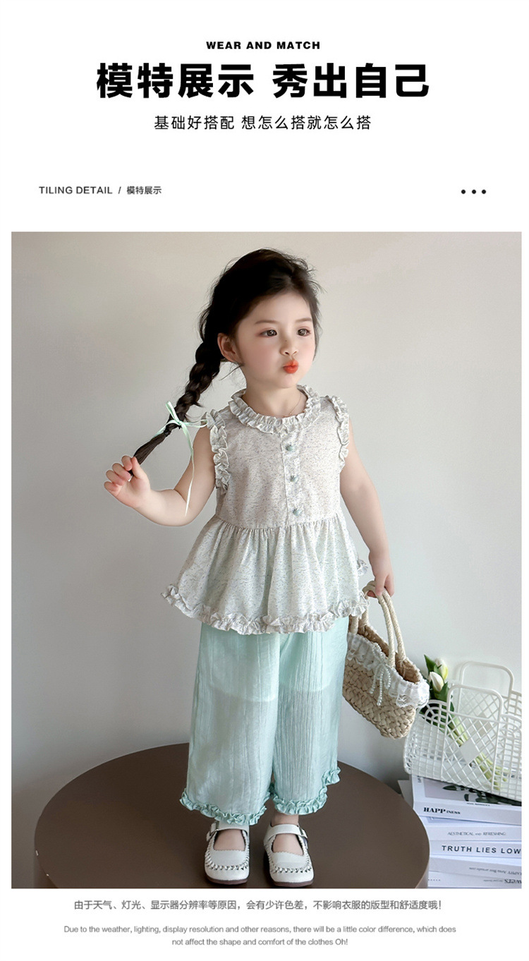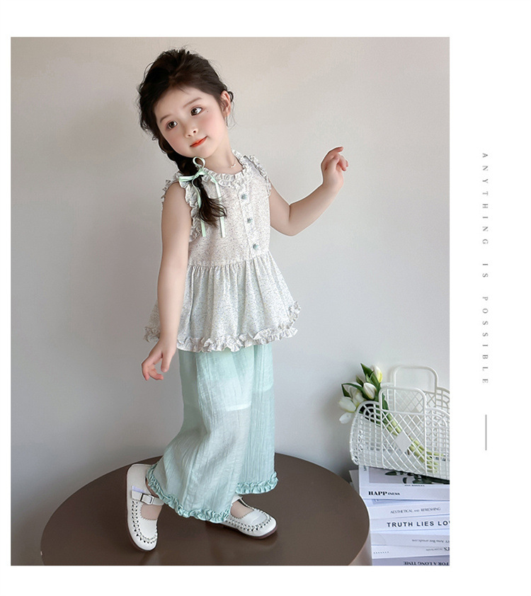 소녀의 꽃 귀 가장자리 세트 2025 여름 새로운 패션 소녀의 세련된 투피스 세트 어린이 여름 원피스스토어 가기