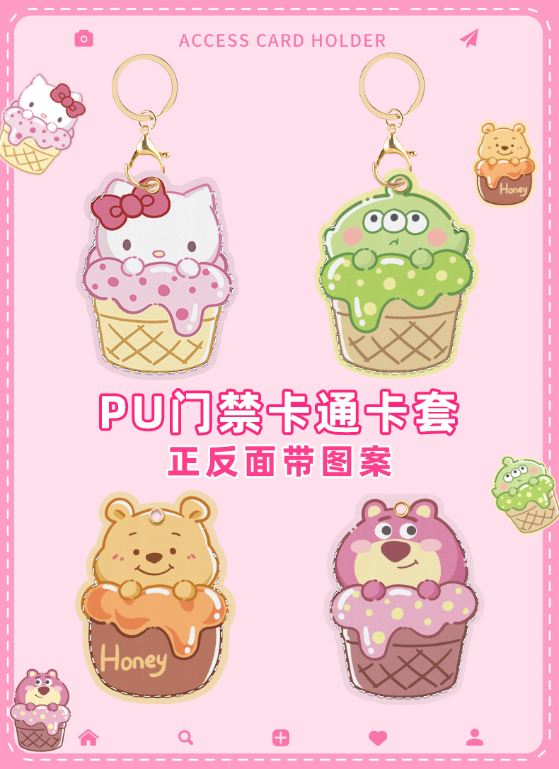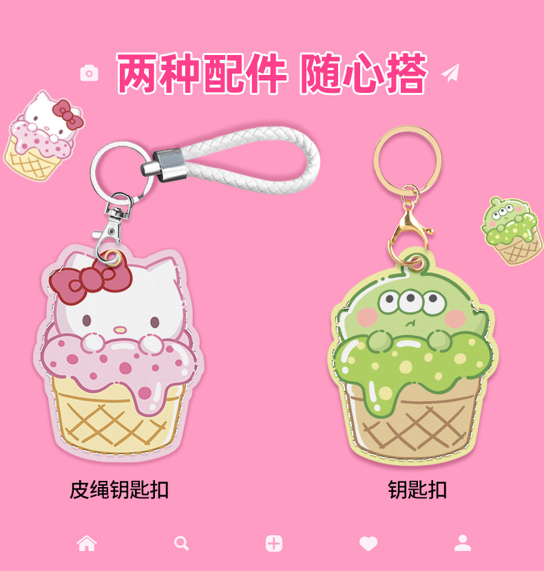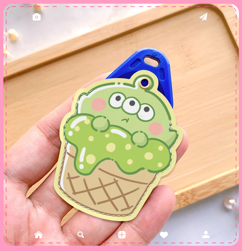 액세스 카드 커버 둥근 작은 직사각형 물방울 pu 가죽 키 체인 전기 자동차 NFC 보호 커버 만화 커뮤니티