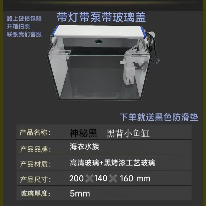 검은색 뒷면이 있는 검은색 비닐 수조, 거실, 소형 가정용 직각 검은색 유리 수조, 뚜껑이 있는 데스크탑 수족관 수조스토어 가기