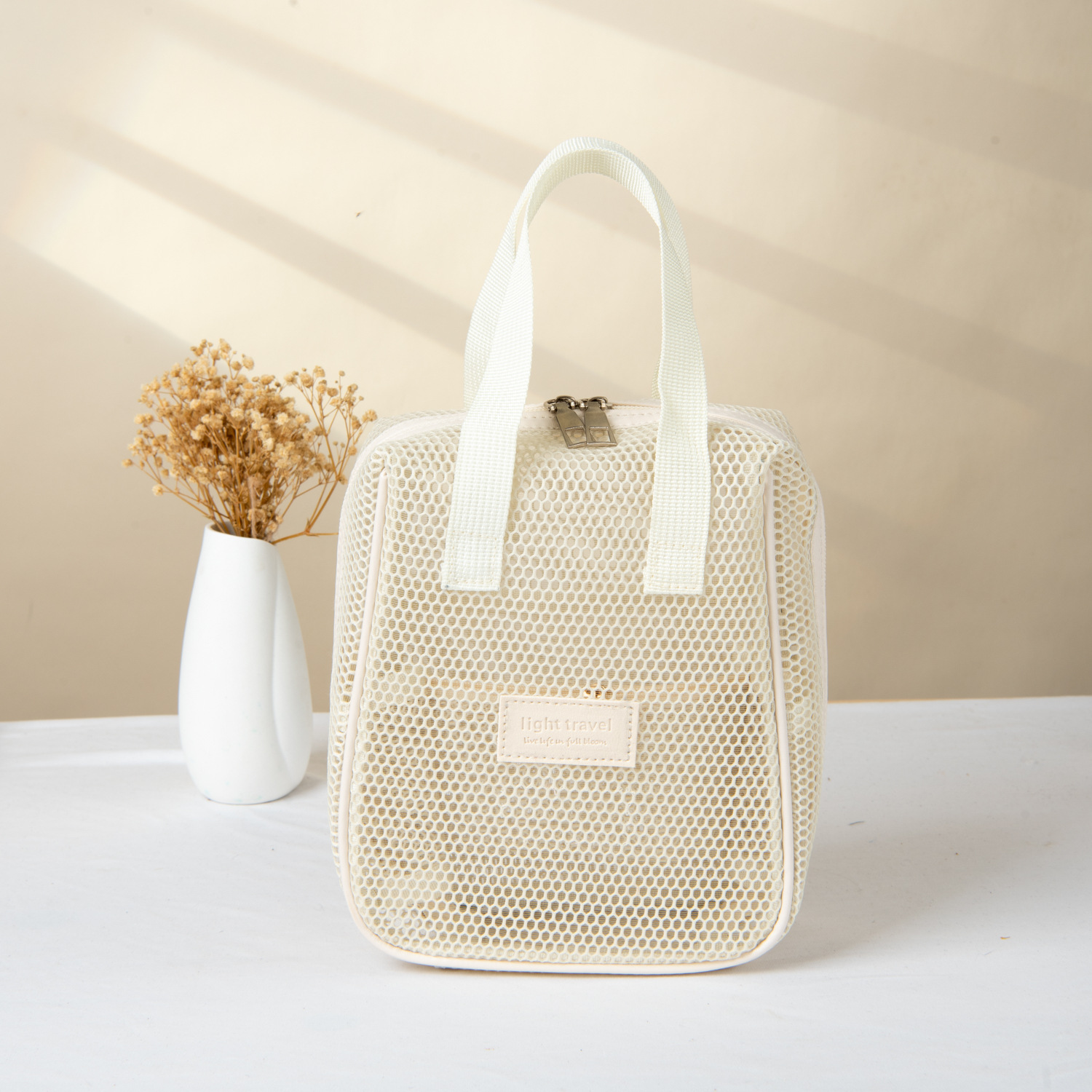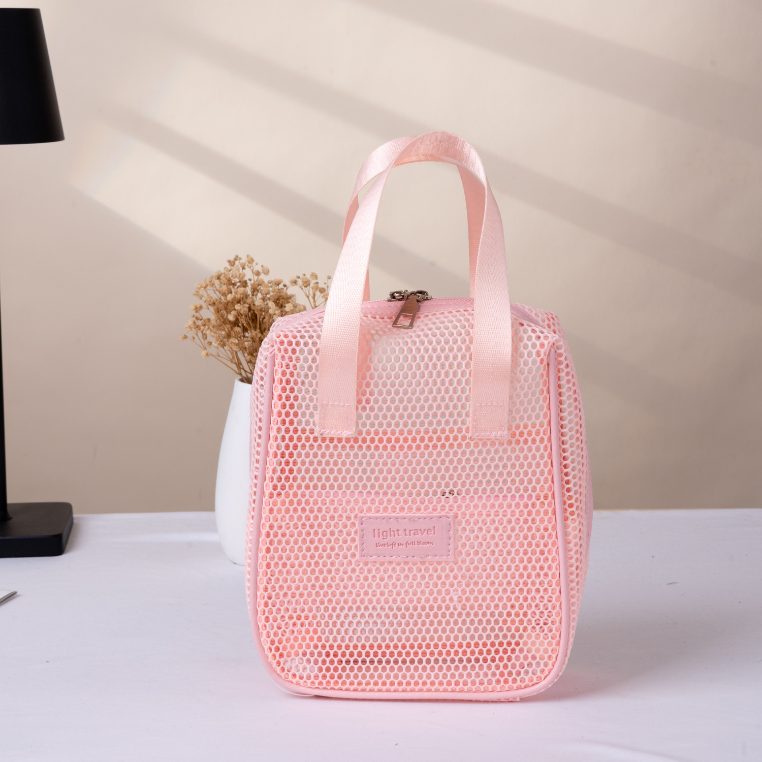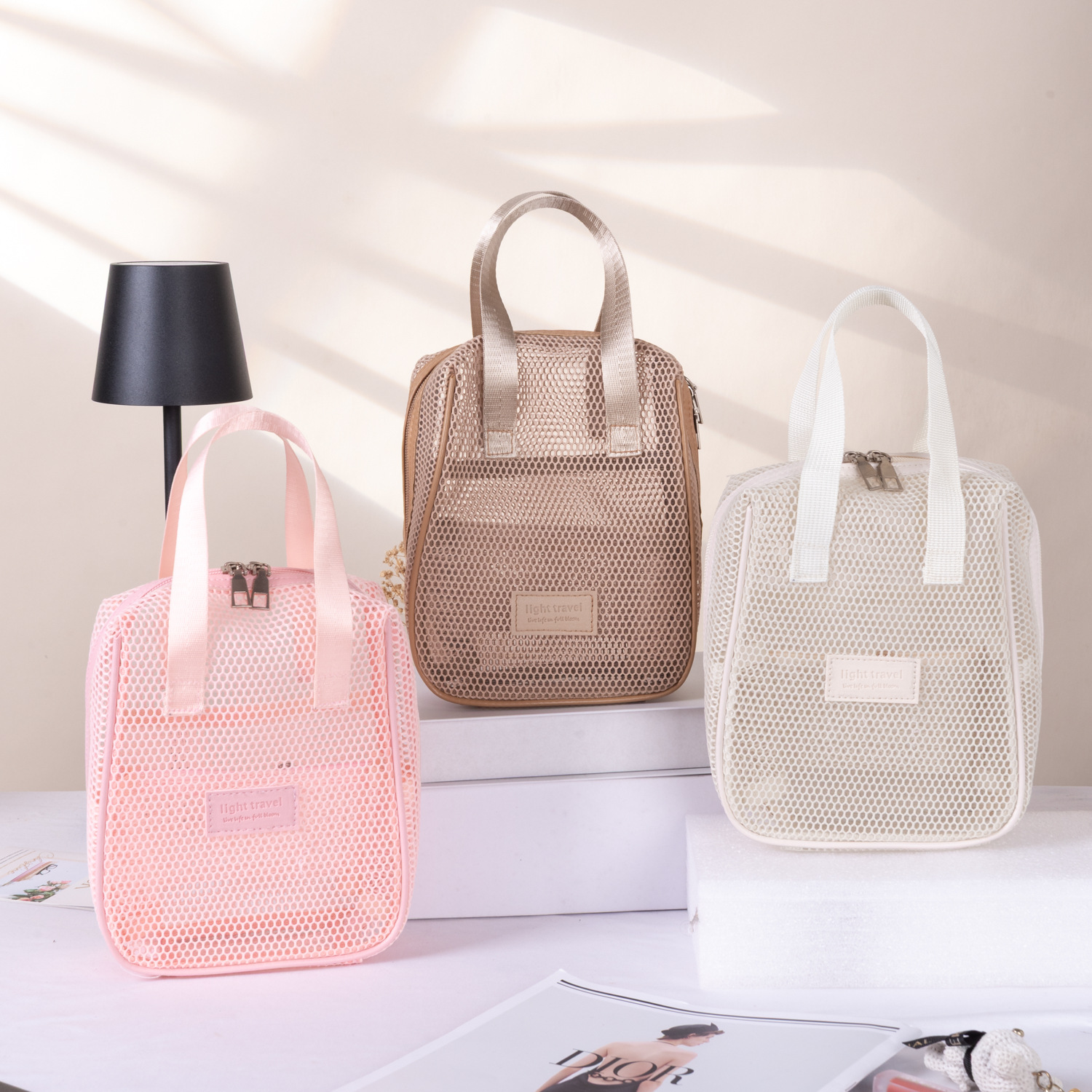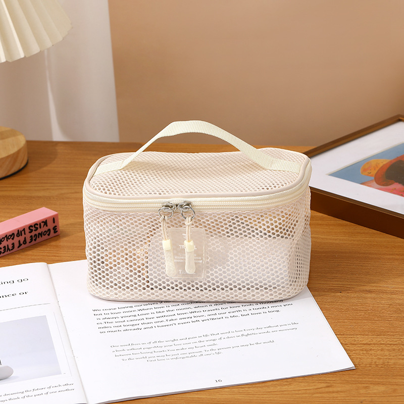 25 년 폭발성 중공 메쉬 화장품 가방 대용량 휴대용 다기능 저장 가방 휴대용 여행 클라우드 스토리지