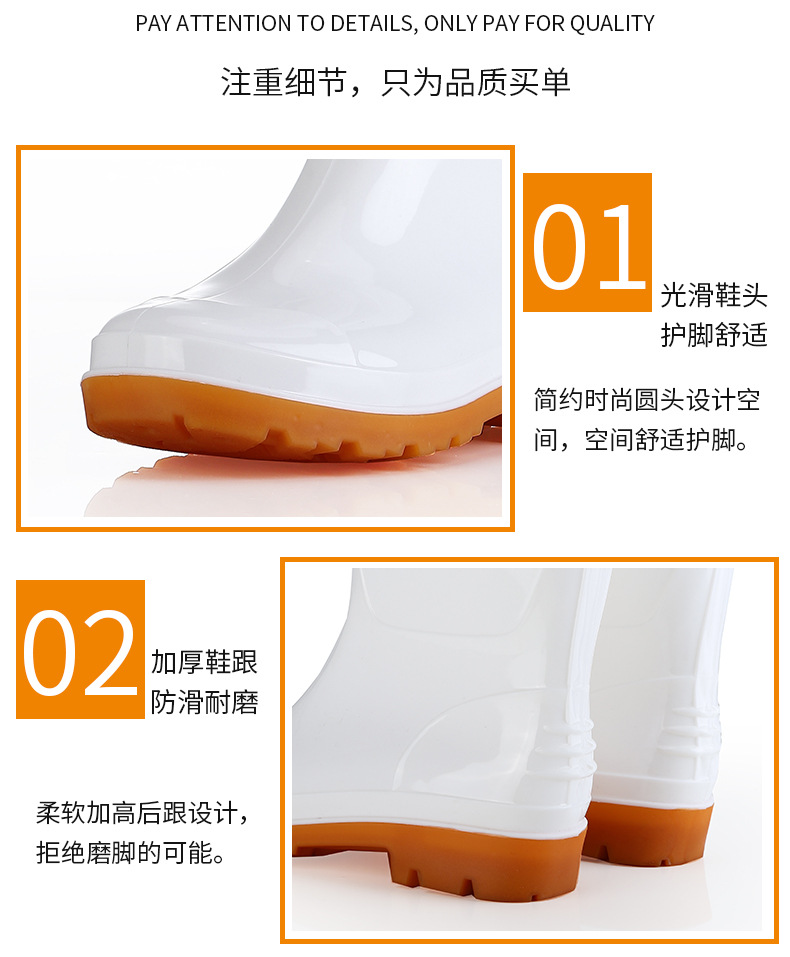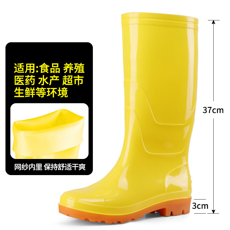 식품용 부츠, 하이탑 순백색 방수 미끄럼 방지 식품 주방 위생 워터 부츠, 소가죽 내마모성 보온 레인 부츠스토어 가기