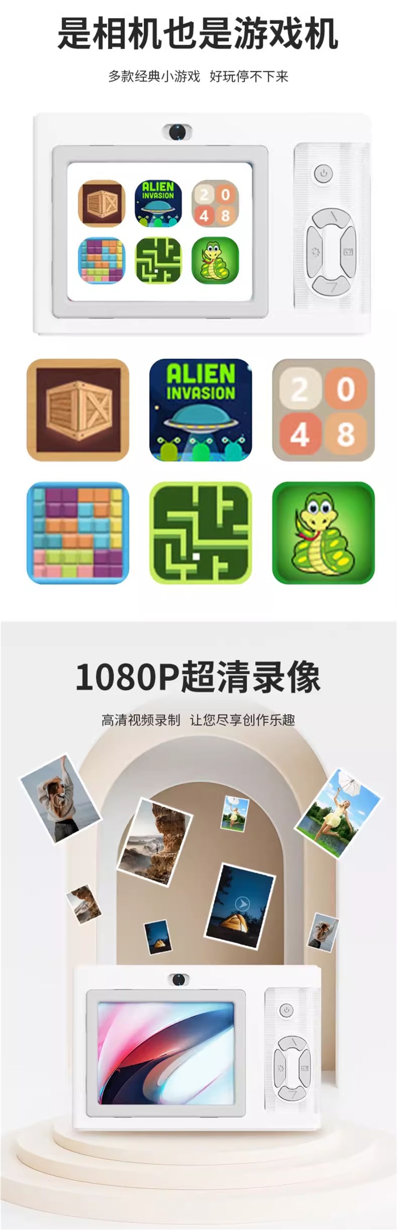 • 로맨틱하고 달콤한 선물 상자 [흰색] 전면 및 후면 9600w 픽셀 2.4inch 고화질 화면 + 사진 및 비디오 + 만화 프레임 - [업그레이드 패키지 1] 32G 메모리 카드*