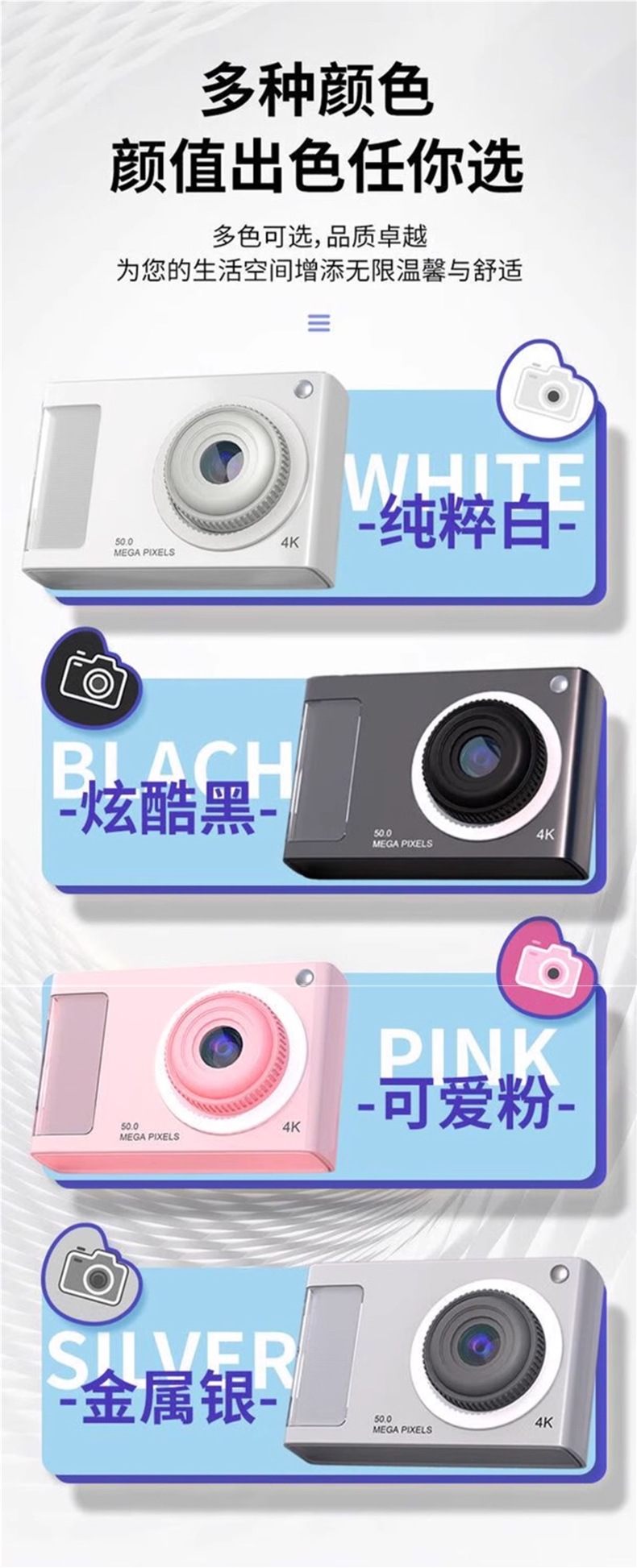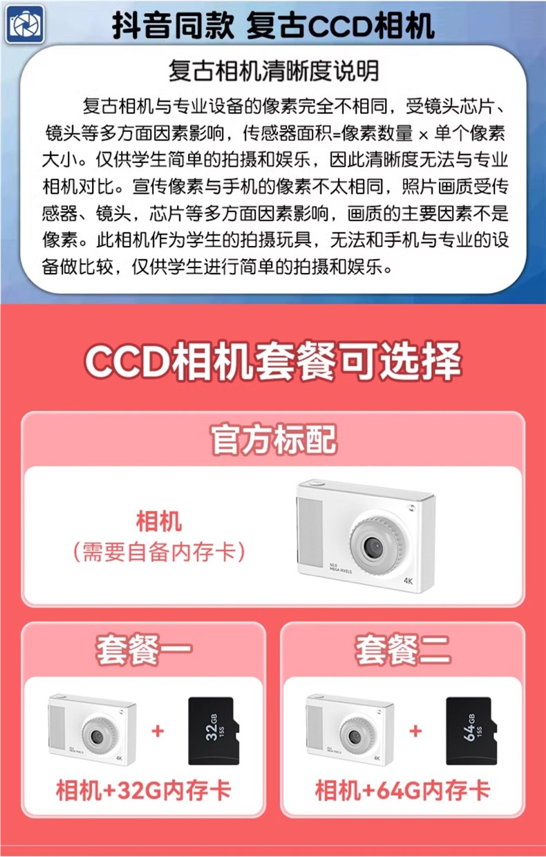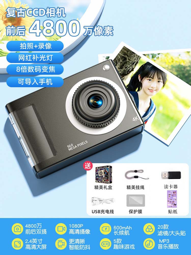 • 스페이스 실버 [4800W 고화질 픽셀 + 내장 필 라이트 + 다양한 필터] - [패키지 1] 32G 메모리 카드 * Type-C 인터페이스