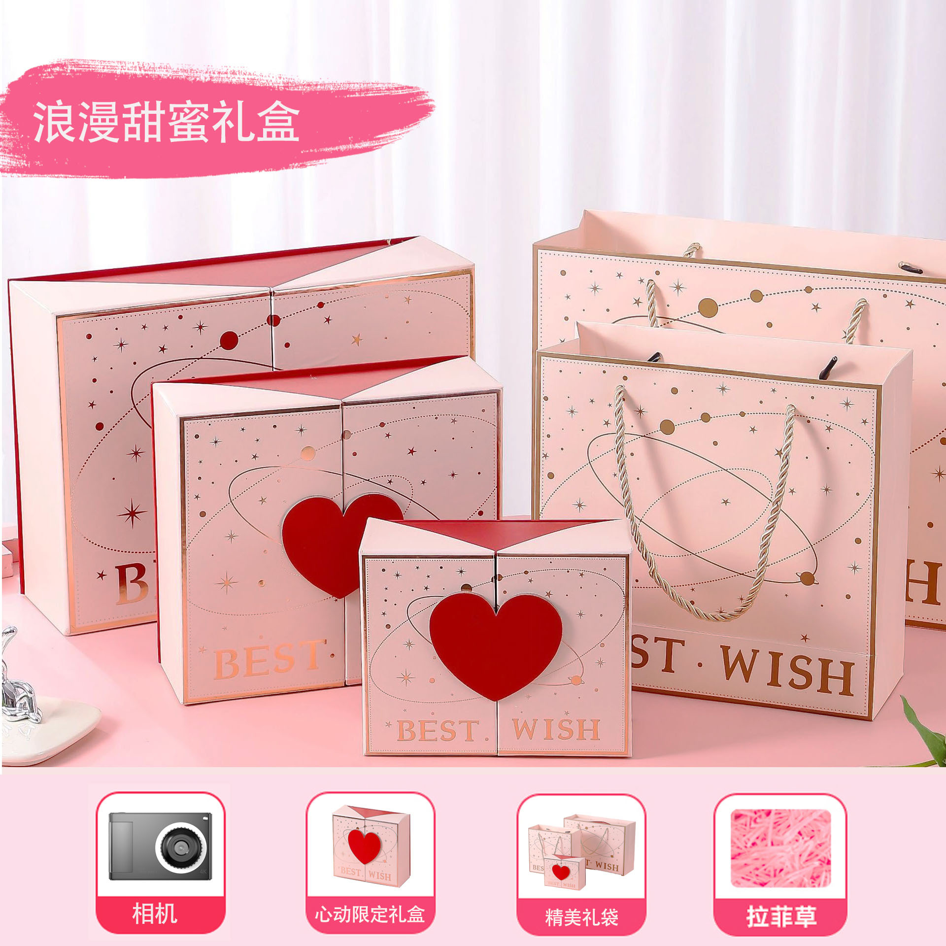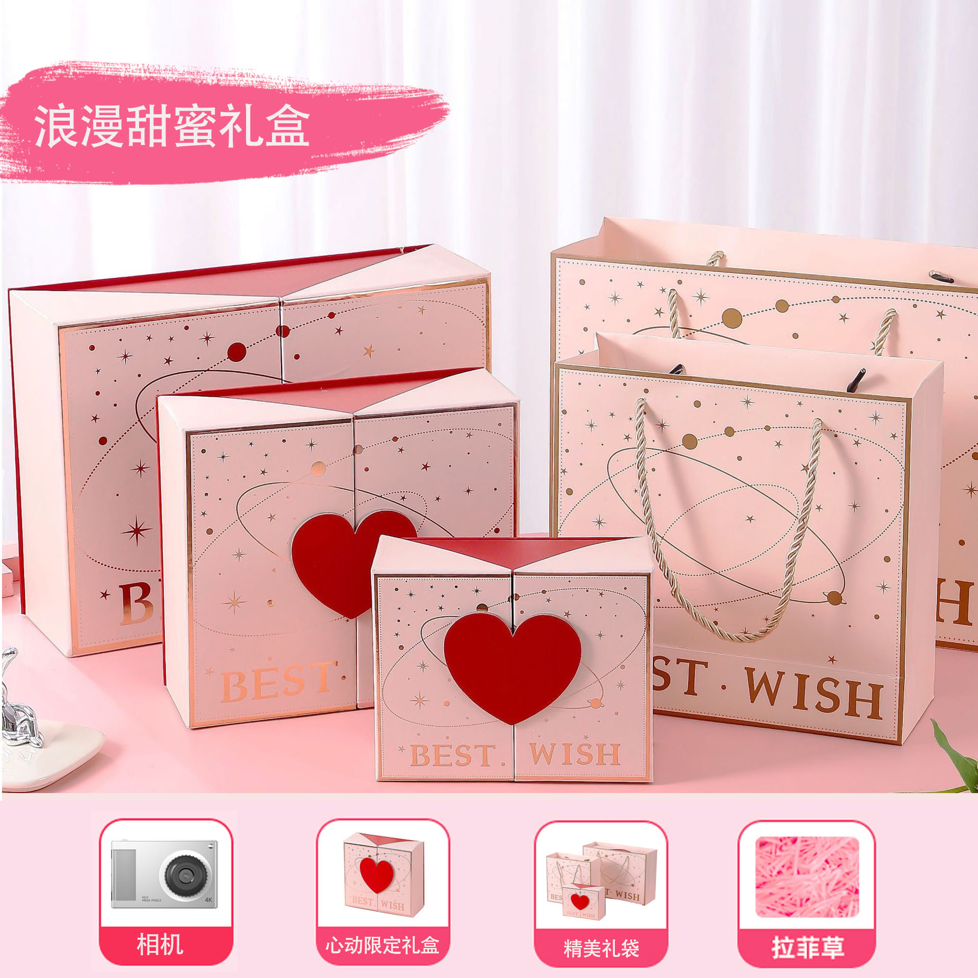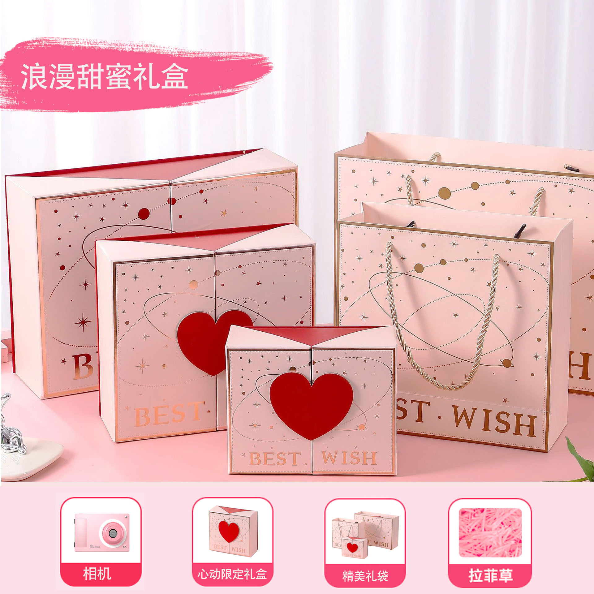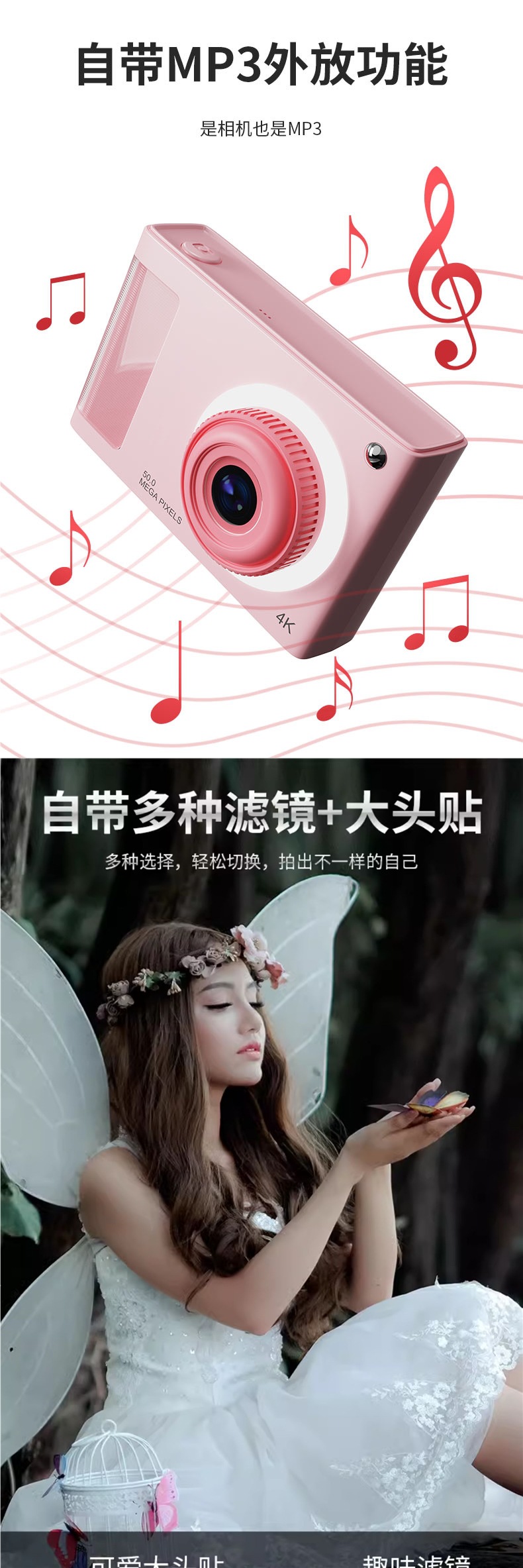 • 로맨틱하고 달콤한 선물 상자 [핑크] 전후 9600w 픽셀 2.4inch 고화질 화면 + 사진 및 비디오 + 만화 프레임 - [업그레이드 패키지 2] 64G 메모리 카드*