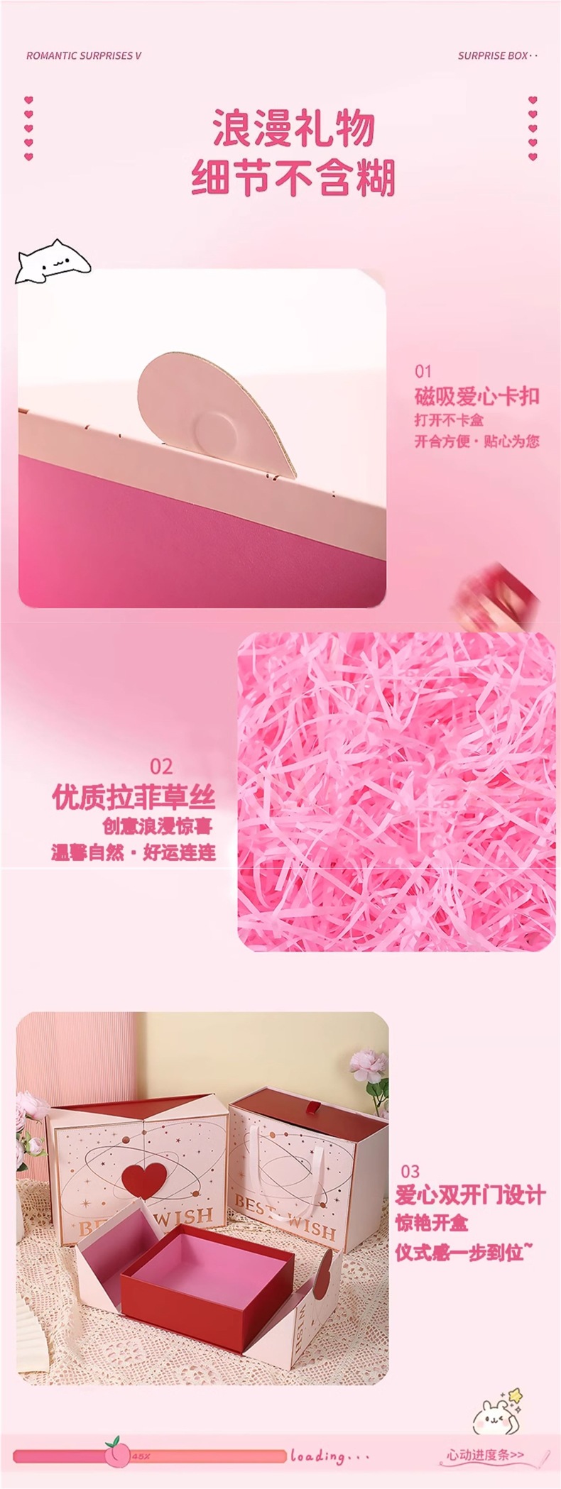 • 로맨틱하고 달콤한 선물 상자 [핑크] 전후 9600w 픽셀 2.4inch 고화질 화면 + 사진 및 비디오 + 만화 테두리 - 표준