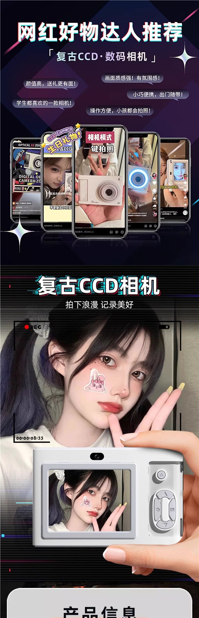 CCD 카메라 학생 파티 디지털 사진 복고풍 고양이 소녀 어린이 휴대용 소형 폴라로이드 생일 발렌타인 데이.