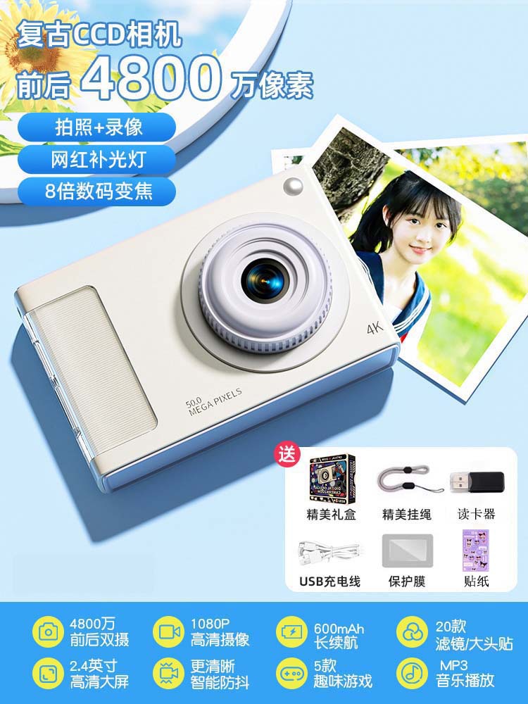 • 우아한 흰색 [4800W 고화질 픽셀 + 내장 보조광 + 다양한 필터] - [패키지 1] 32G 메모리 카드 * Type-C 인터페이스