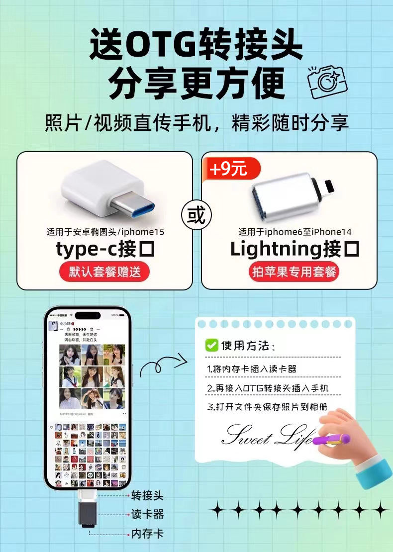• ☛기본적으로 TypeC 어댑터는 Apple 어댑터 옵션 라이트닝 인터페이스 패키지로 전송됩니다. - [패키지 2] 64G 메모리 카드 *Typ