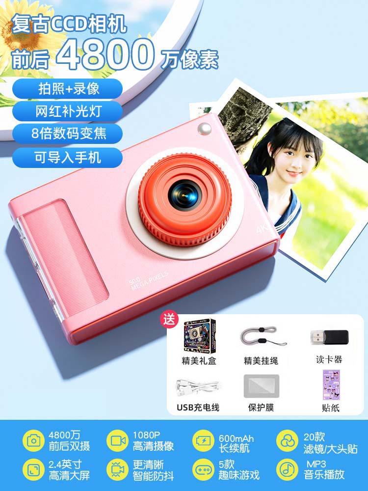• 사쿠라 핑크 [4800W 고화질 픽셀 + 내장 필 라이트 + 다양한 필터] - [패키지 2] 64G 메모리 카드 * Type-C 인터페이스
