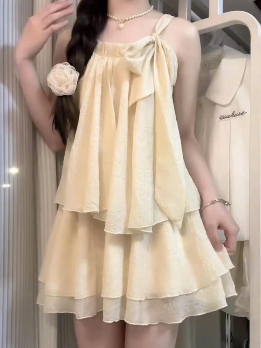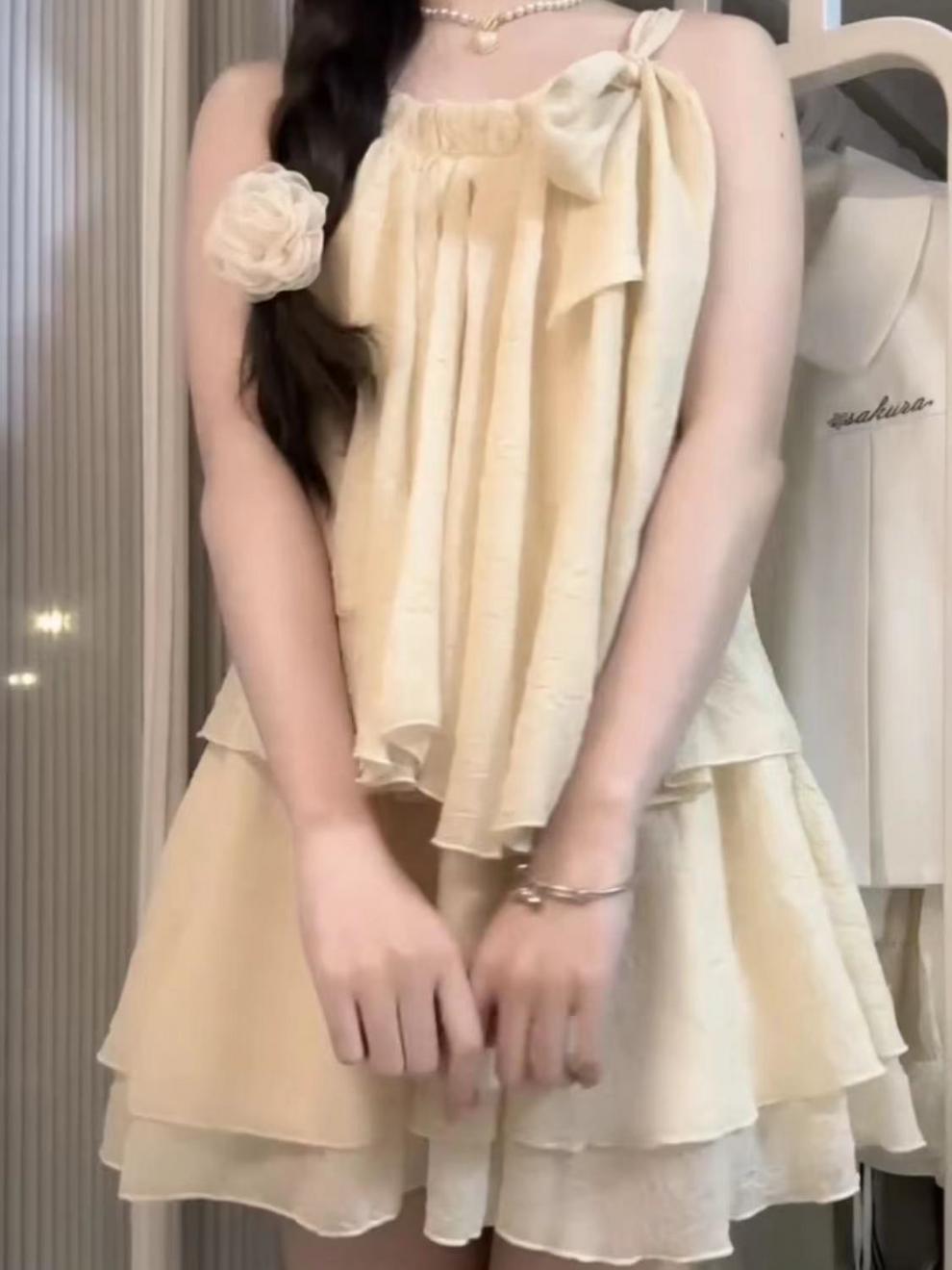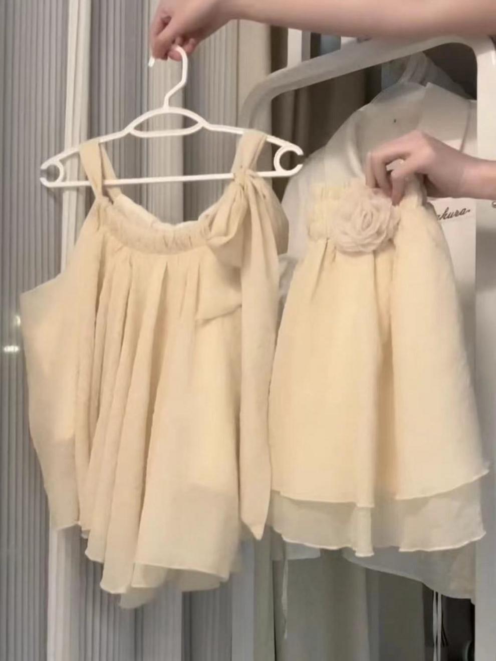 세트 여성 프랑스 원피스 느슨한 최고 문화 봄 및 여름 새로운 세트 슬링 달콤한 부드러운 휴가 원피스스토어 가기