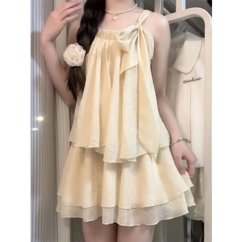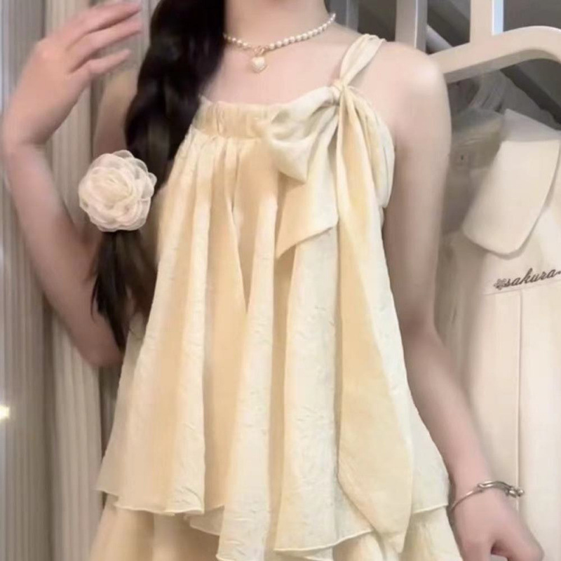 세트 여성 프랑스 원피스 느슨한 최고 문화 봄 및 여름 새로운 세트 슬링 달콤한 부드러운 휴가 원피스