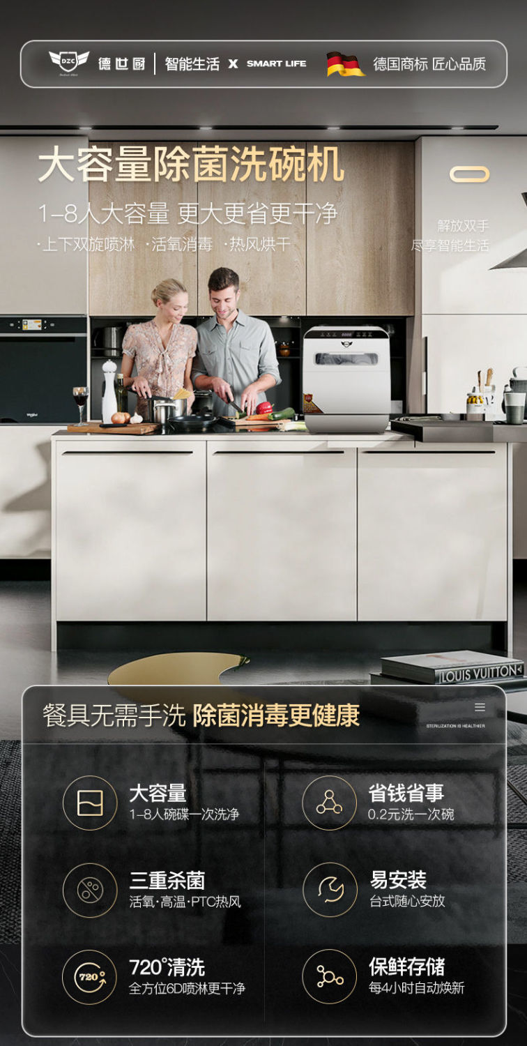 Deshikitchen Q8 임베디드 식기 세척기 가정용 소형 8인용 지능형 자동 위아래 이중 스프레이 건조 및 소독 데스크탑스토어 가기