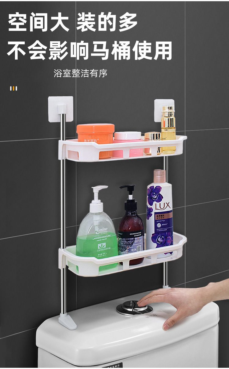 욕실 화장실 선반, 화장지, 세면도구, 2층 수납 선반, 펀치 없는 물탱크 수납 선반