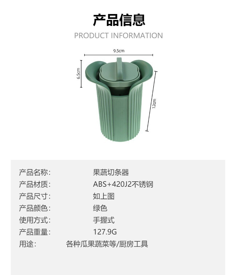과일 및 야채 스트립 커터 가정용 오이 및 무 야채 절단기 수동 다기능 주방 스트립 절단기 빠른 절단 녹색
