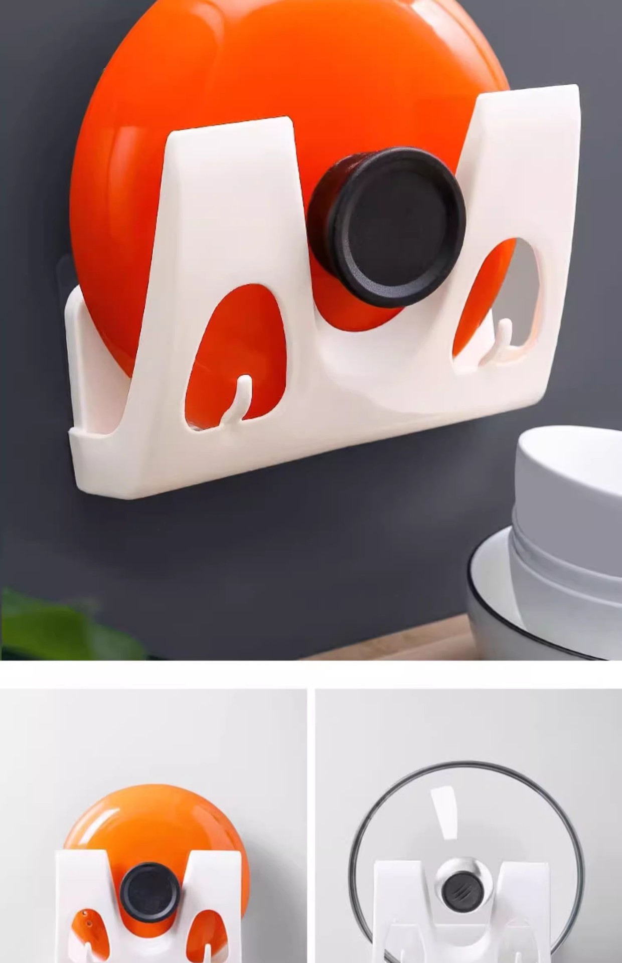냄비뚜껑걸이, 벽걸이형, 펀치 없는 주방 가정용 냄비뚜껑걸이, 벽걸이형 수납선반