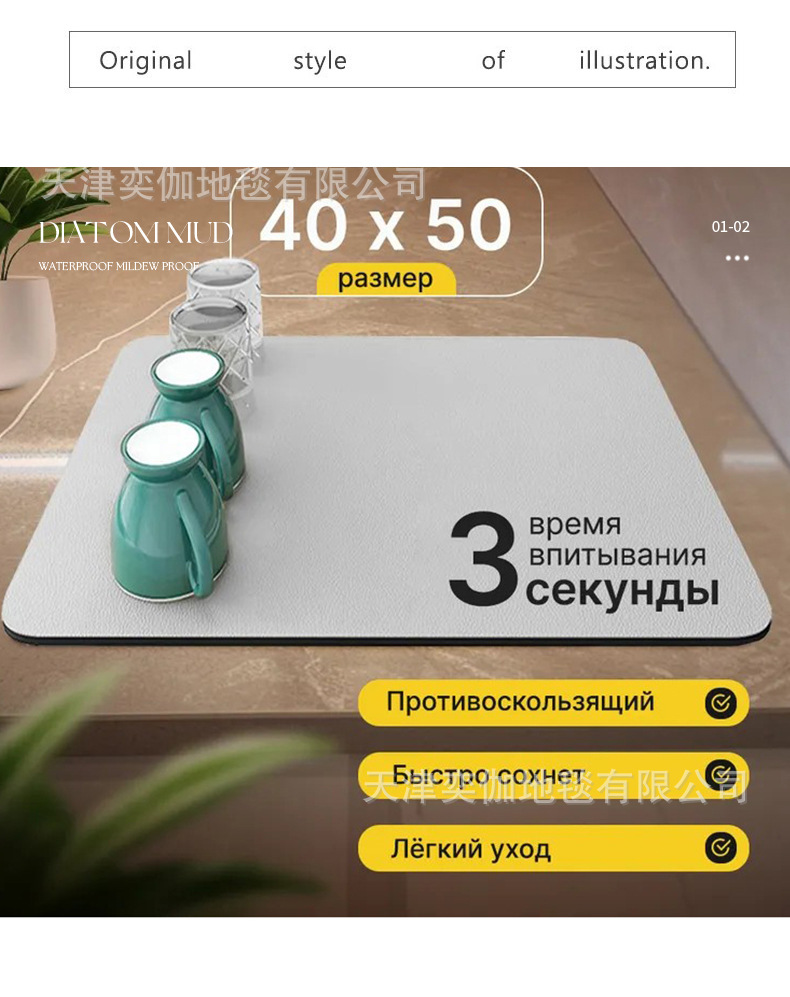 국경 간 주방 배수 패드 부드러운 규조토 진흙 건조 패드 수도꼭지 스플래시 패드 가정용 조리대 흡수성 미끄럼 방지 테이블 패드