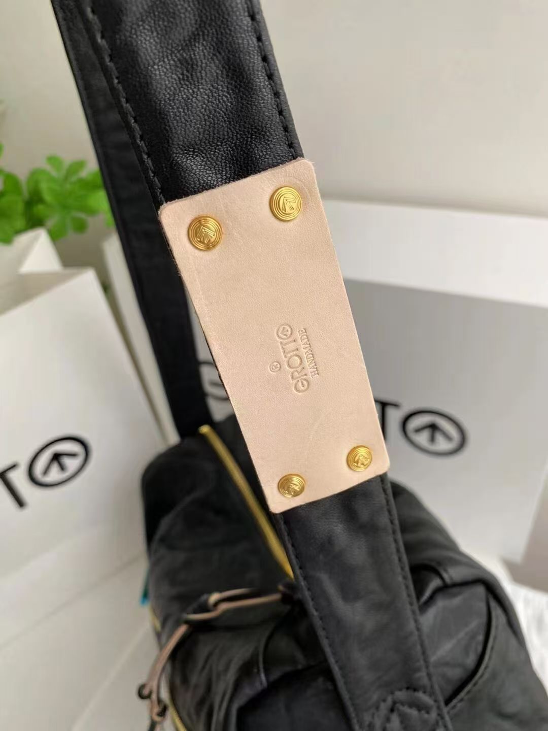 GROTTO 가방 여성의 섬모없는 블랙 스톤 호보 가죽 주름 된 대용량 어깨 크로스 바디 베개 가방스토어 가기