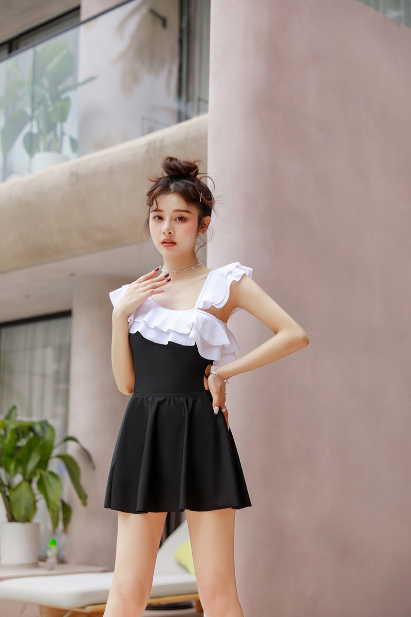 뜨거운 판매 새로운 원피스 수영복 여성용 배꼽 슬리밍 온천 수영복 스커트 스타일 흑백 순수 욕망 수영복 약속 662