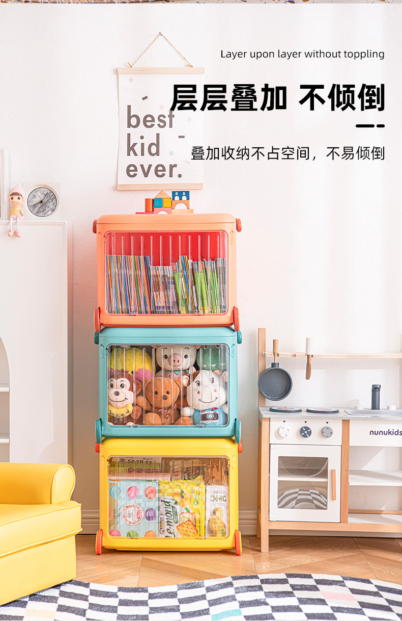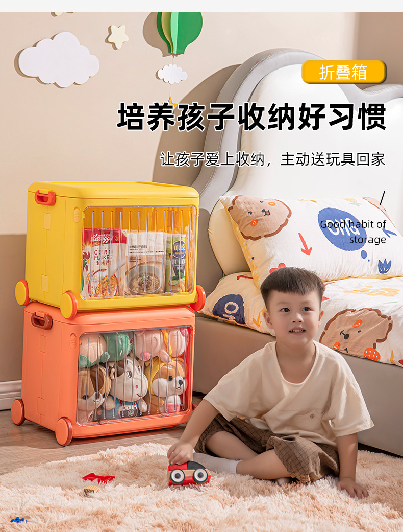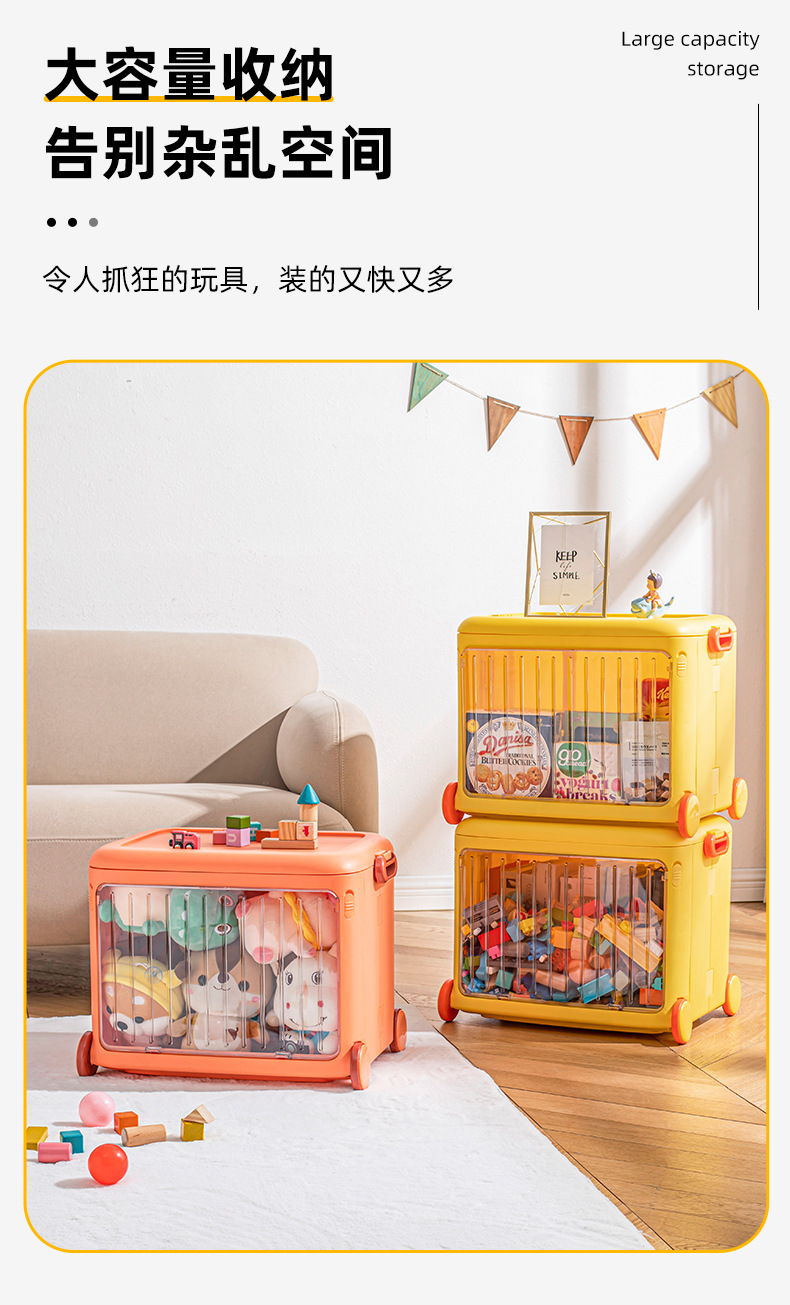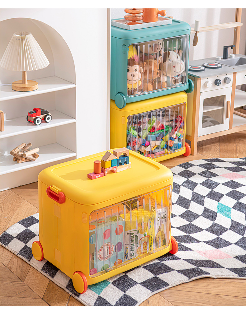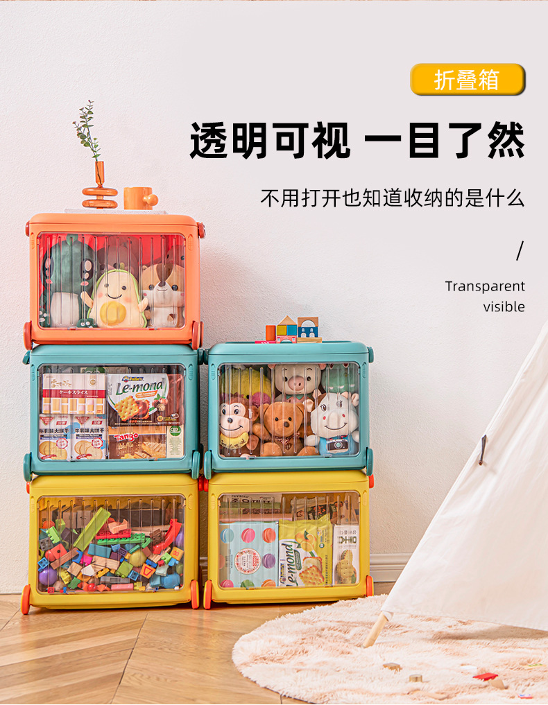 투명한 트롤리 저장 상자를 마무리하는 어린이 장난감 상자 접이식 가구 마감 상자 움직일 수있는 책 간식